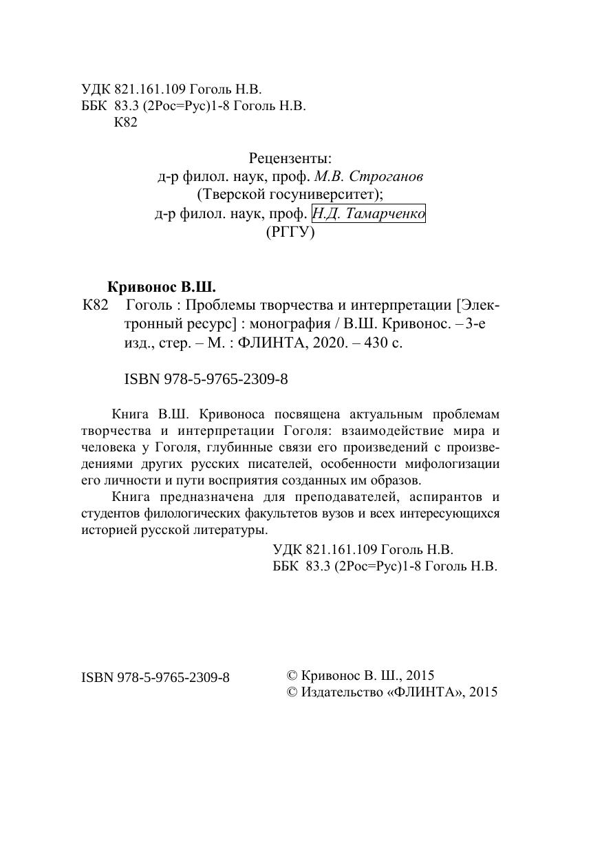 Книга В.Ш. Кривоноса посвящена актуальным проблемам творчества и интерпретации Гоголя: взаимодействие мира и человека у Гоголя, глубинные связи его произведений с произведениями других русских писателей, особенности мифологизации его личности и пути восприятия созданных им образов. Книга предназначена для преподавателей, аспирантов и студентов филологических факультетов ВУЗов и всех интересующихся истсорией русской литературы.