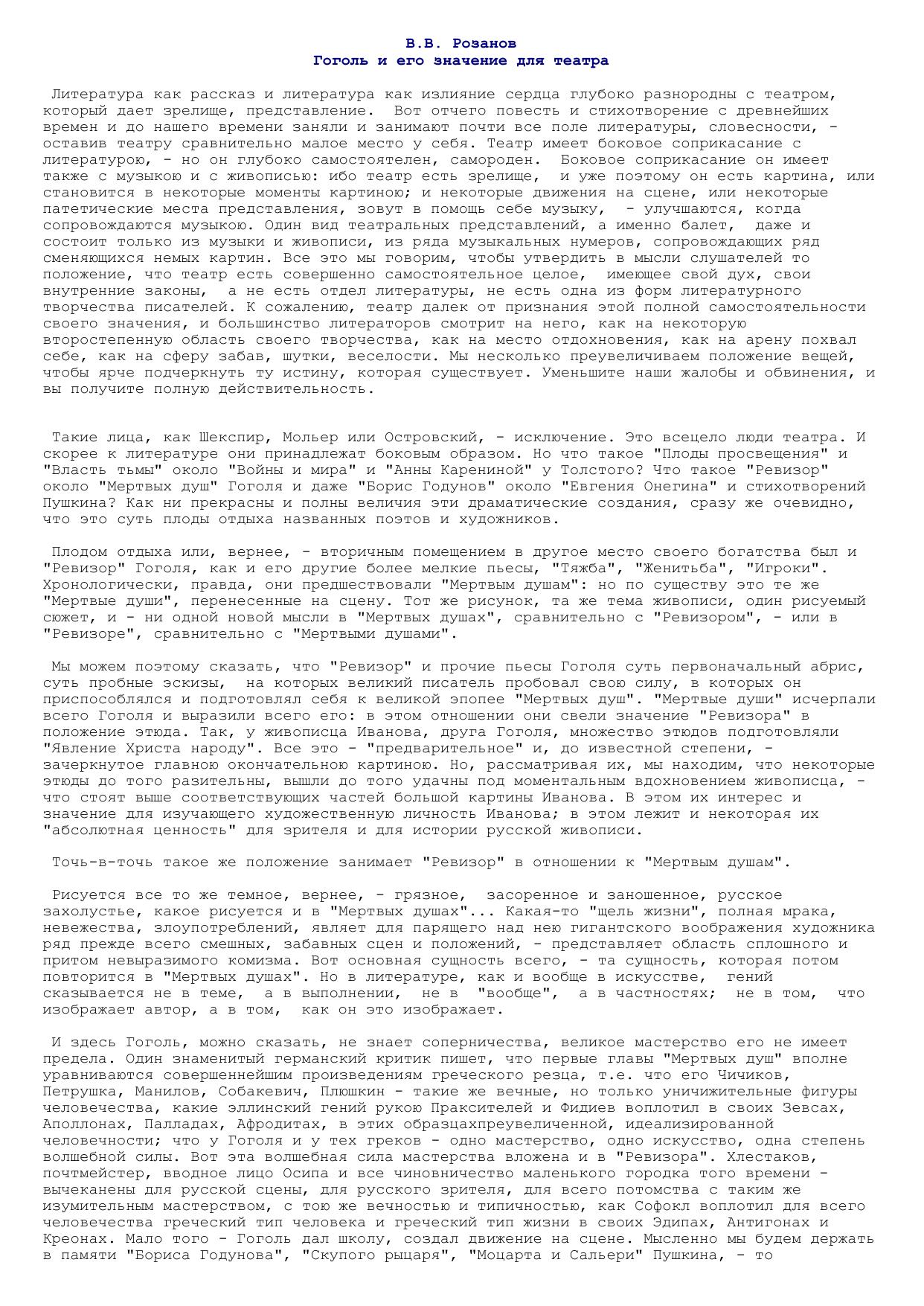 Гоголь и его значение для театра