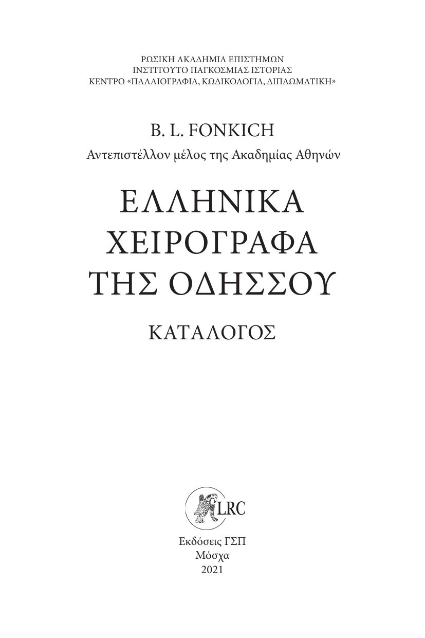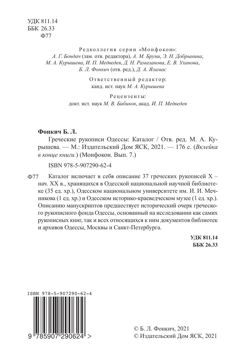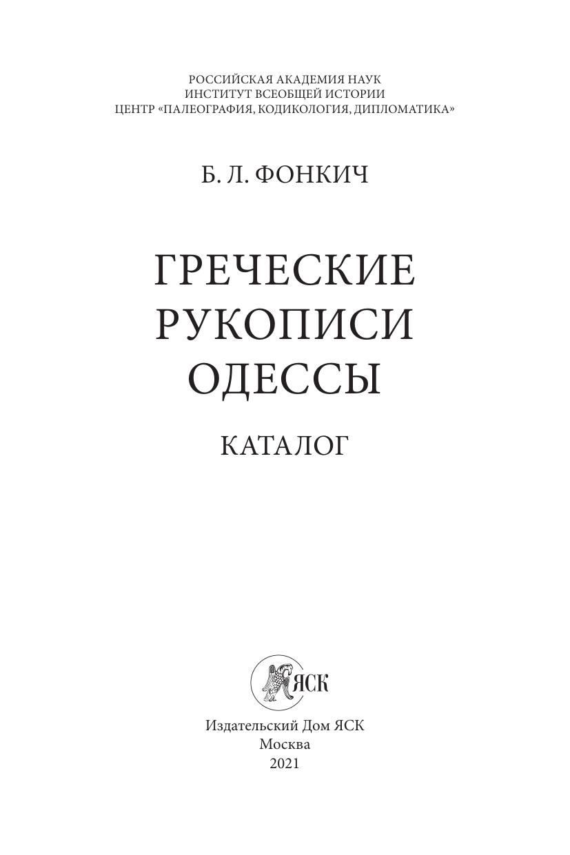 Греческие рукописи Одессы: Каталог