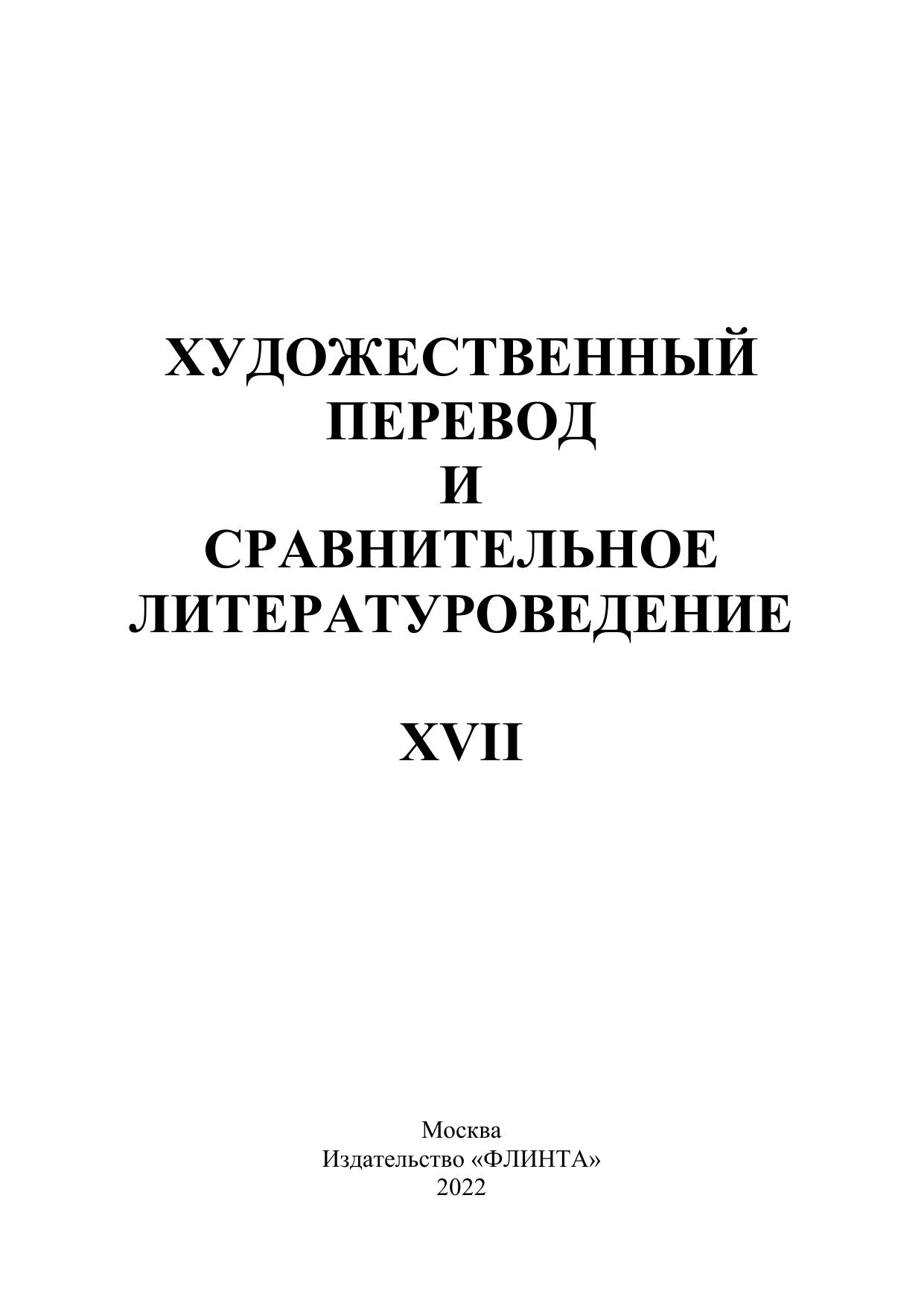 Художественный перевод и сравнительное литературоведение. XVII: сборник научных трудов