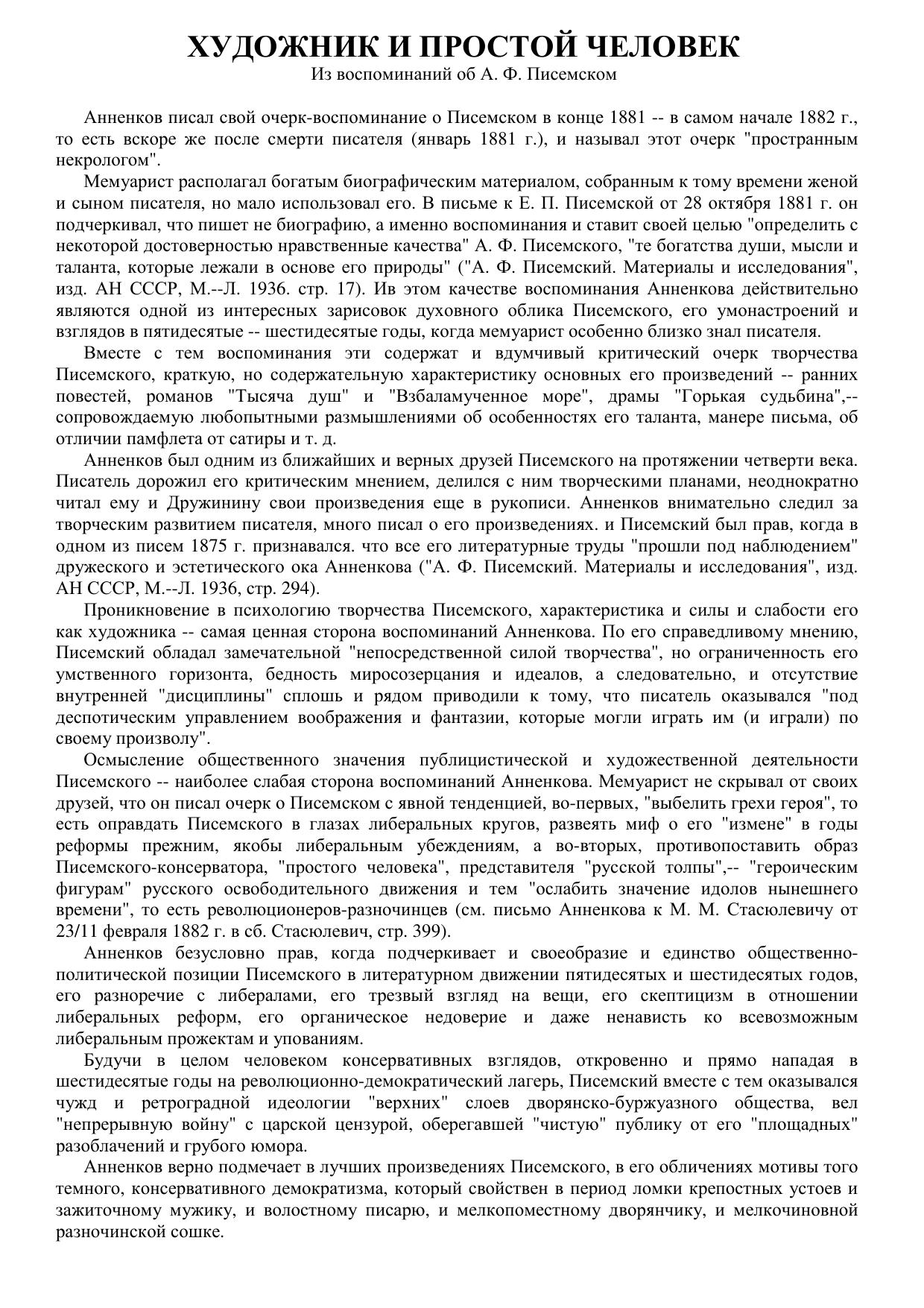 Художник и простой человек. Из воспоминаний об А. Ф. Писемском