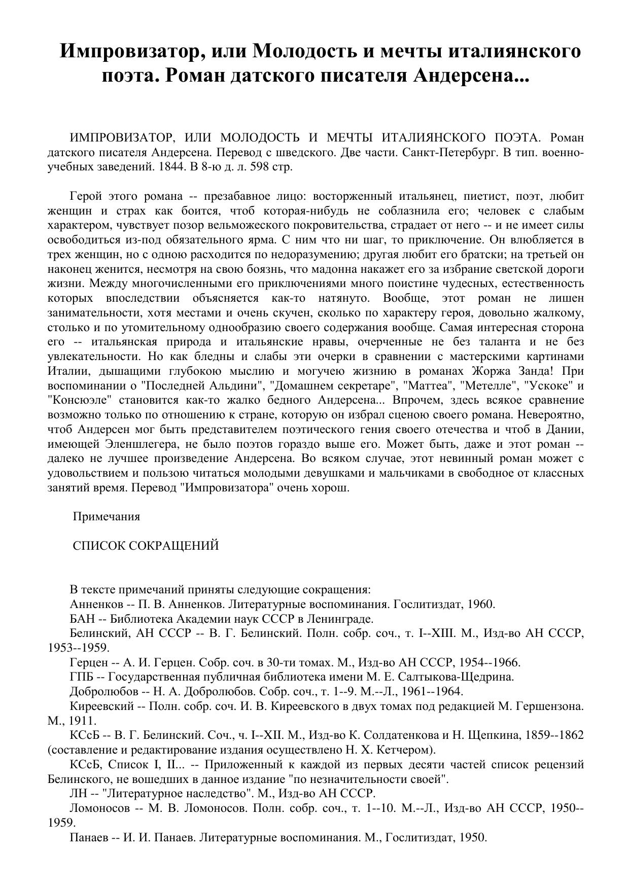 Импровизатор, или Молодость и мечты италиянского поэта. Роман датского писателя Андерсена