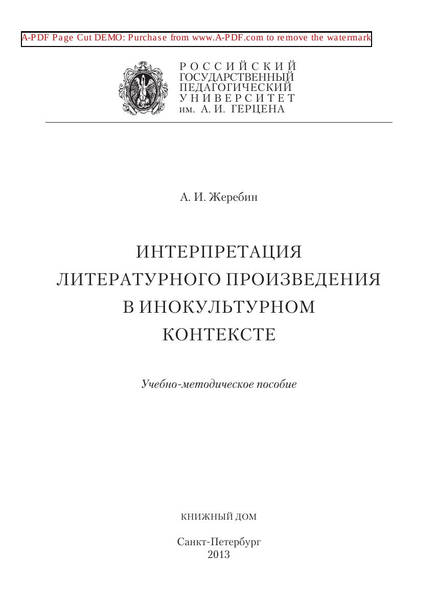 Интерпретация литературного произведения в инокультурном контексте