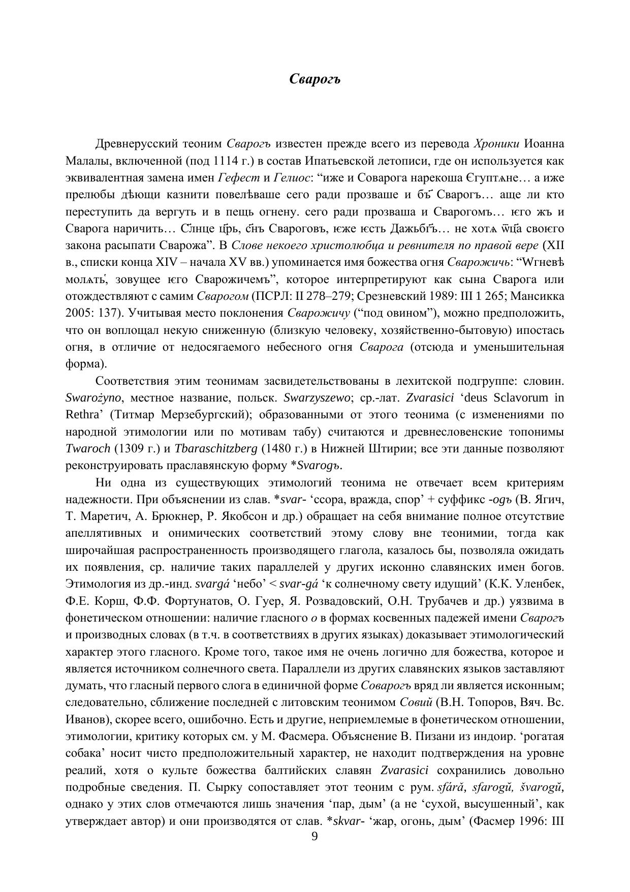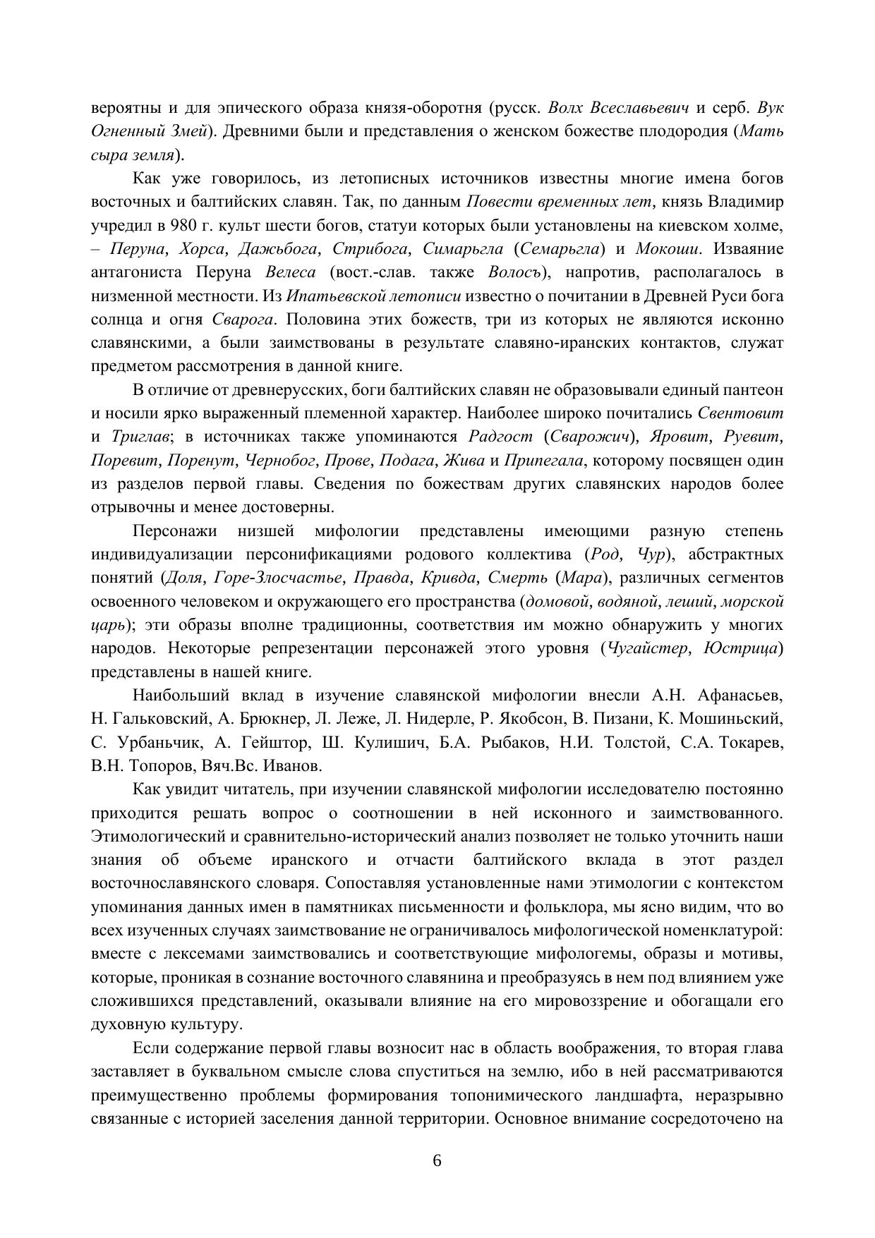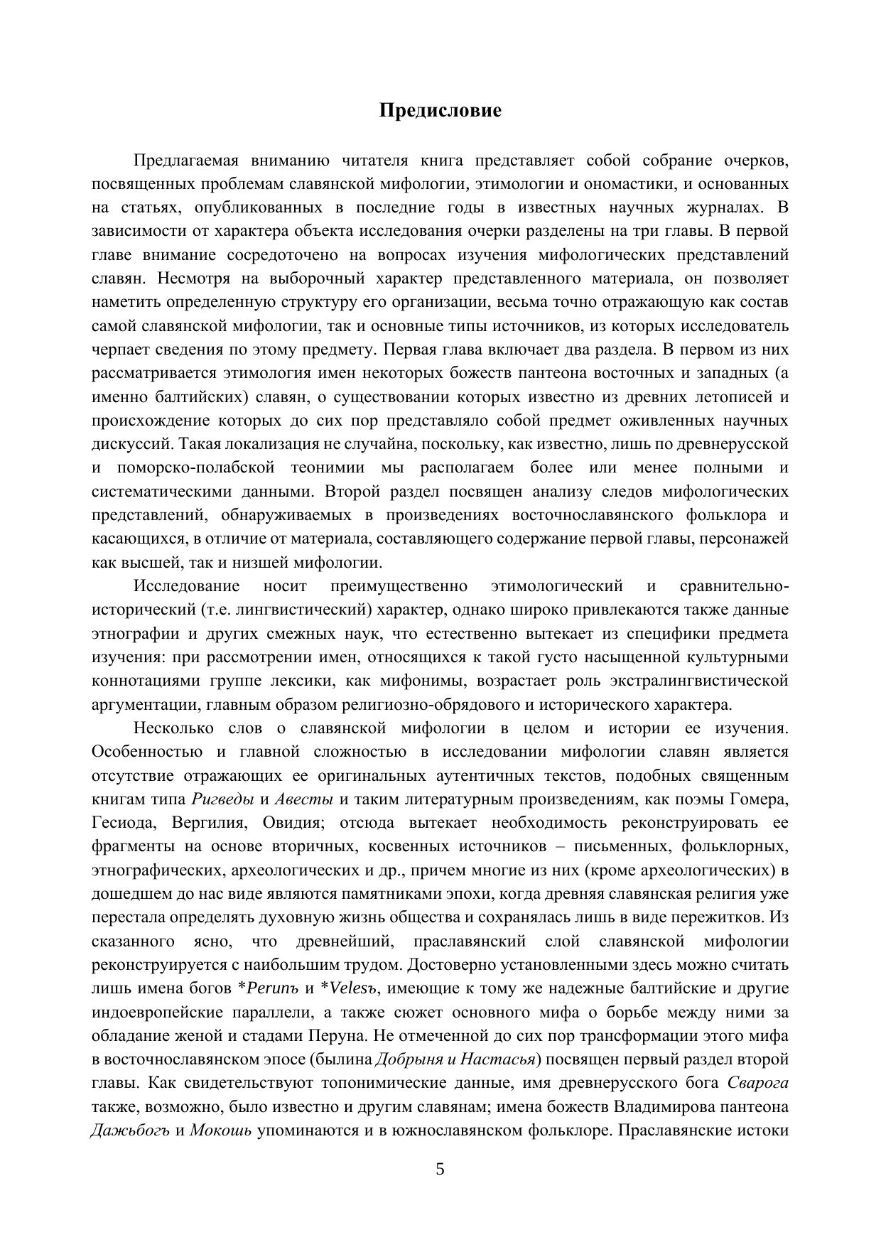 Предлагаемая вниманию читателя книга представляет собой собрание очерков, посвященных проблемам славянской мифологии, этимологии и ономастики, и основанных на статьях, опубликованных в последние годы в известных научных журналах. В зависимости от характера объекта исследования очерки разделены на три главы. В первой главе внимание сосредоточено на вопросах изучения мифологических представлений славян. Она включает два раздела, в первом из которых рассматривается этимология имен некоторых божеств пантеона восточных и западных (а именно балтийских) славян, а второй посвящен анализу следов мифологических представлений, обнаруживаемых в произведениях восточнославянского фольклора. Во второй главе рассматриваются преимущественно проблемы формирования топонимического ландшафта, неразрывно связанные с историей заселения данной территории, а в третьей даются этимологии нескольких нарицательных слов восточнославянских языков.