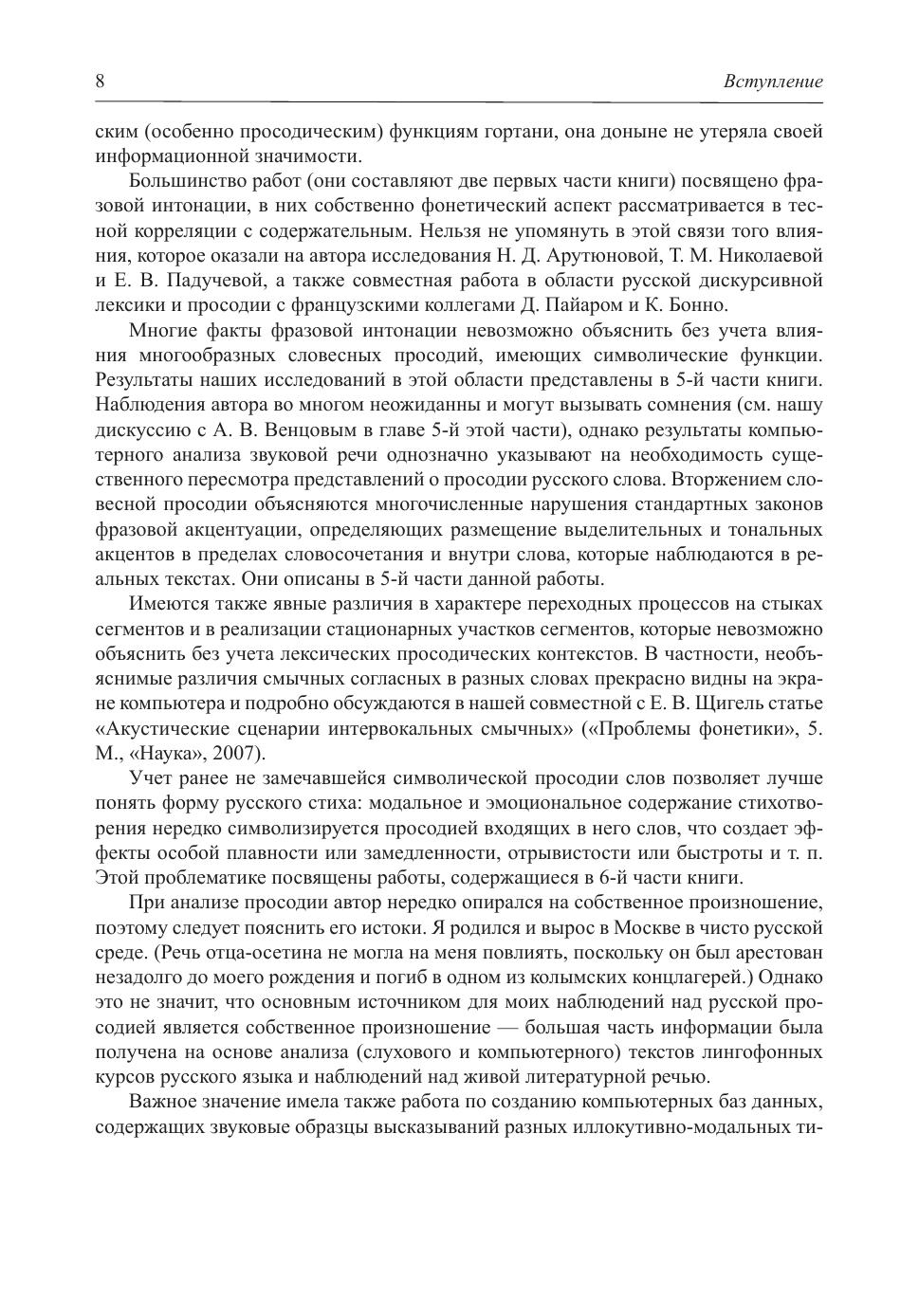 Относительный "вес" сегментных и просодических исследований в мировой фонетике заметно меняется в пользу последних. Цель настоящей книги состоит в том, чтобы изменить представление о просодической структуре русской речи в сторону увеличения как инвентаря используемых средств, так и пространства реально наблюдаемых комбинаций. Эта цель отвечает современной ситуации в области просодической фонетики. Компьютер обнаруживает огромное разнообразие просодических структур, которое отражает комбинаторное многообразие исходных компонентов. Изучение просодии открывает новые перспективы в понимании базовой категориальной сети, на которой основаны интерпретация мира и речевое взаимодействие. Функциональная ориентация при исследовании просодии позволяет увидеть не только символический характер интонации, но и обусловленность некоторых просодических характеристик словесного уровня. Это позволяет лучше понять форму русского стиха: модальное и эмоциональное содержание стихотворения нередко символизируется просодией входящих в него слов. Для специалистов в области филологии и языкознания.