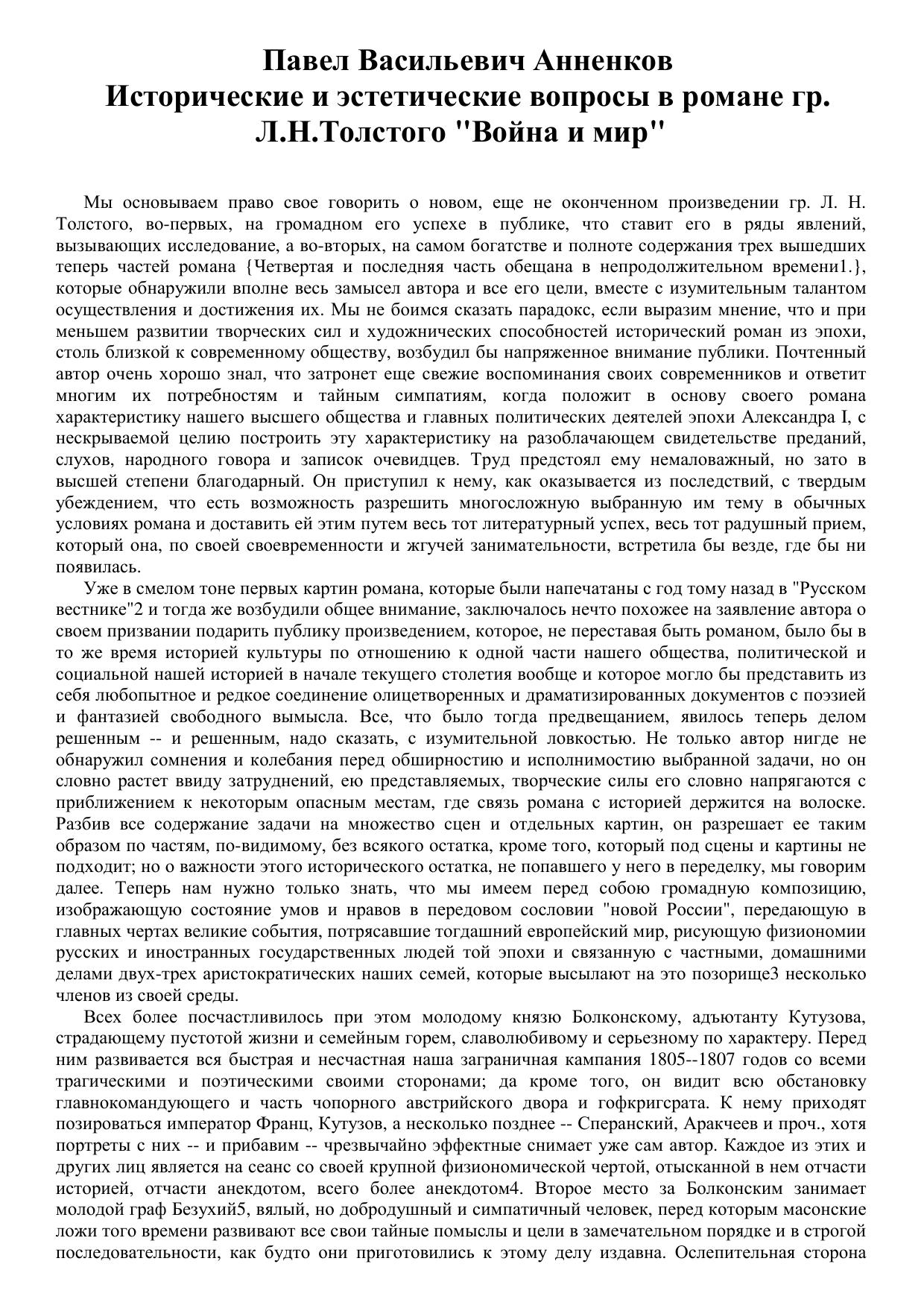 Исторические и эстетические вопросы в романе гр. Л. Н. Толстого "Война и мир"