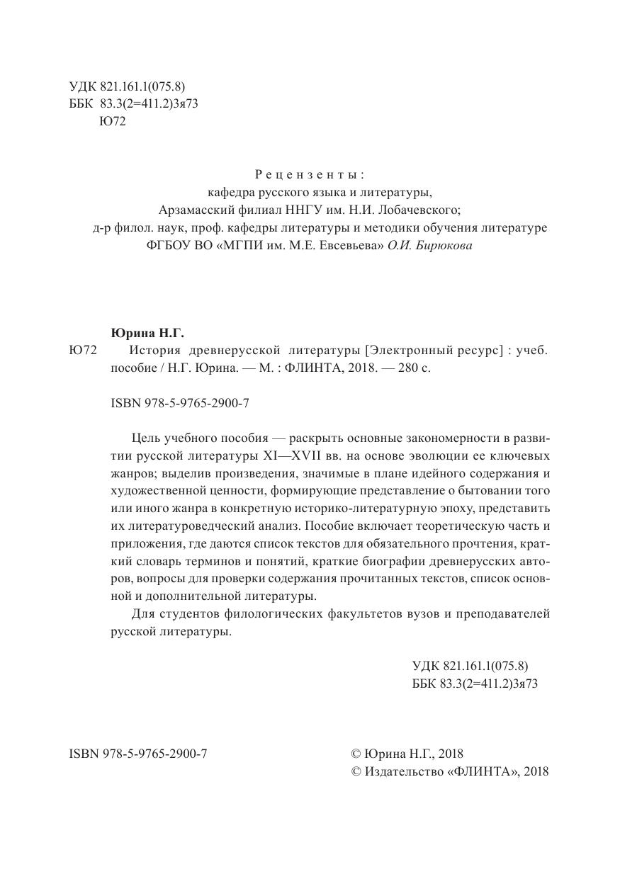 Цель учебного пособия — раскрыть основные закономерности в развитии русской литературы XI—XVII вв. на основе эволюции ее ключевых жанров; выделив произведения, значимые в плане идейного содержания и художественной ценности, формирующие представление о бытовании того или иного жанра в конкретную историко-литературную эпоху, представить их литературоведческий анализ. Пособие включает теоретическую часть и приложения, где даются список текстов для обязательного прочтения, краткий словарь терминов и понятий, краткие биографии древнерусских авторов, вопросы для проверки содержания прочитанных текстов, список основной и дополнительной литературы. Для студентов филологических факультетов вузов и преподавателей русской литературы.