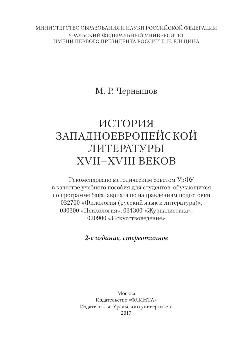 В учебном пособии содержится краткое изложение основных фактов литературной истории Европы XVII и XVIII веков, включая собственно исторические и культурные события, важнейшие эстетические понятия и концепции, ключевые сведения о личности и биографиях крупнейших писателей этих периодов и их произведениях, входящих в программу соответствующего историко-литературного курса. Кроме того, предлагается анализ наиболее существенных аспектов идейного содержания и поэтики главных литературных шедевров эпохи, сопровождаемый примерами в виде обширных цитат из анализируемых текстов. Для студентов гуманитарных специальностей, изучающих историю западной литературы.