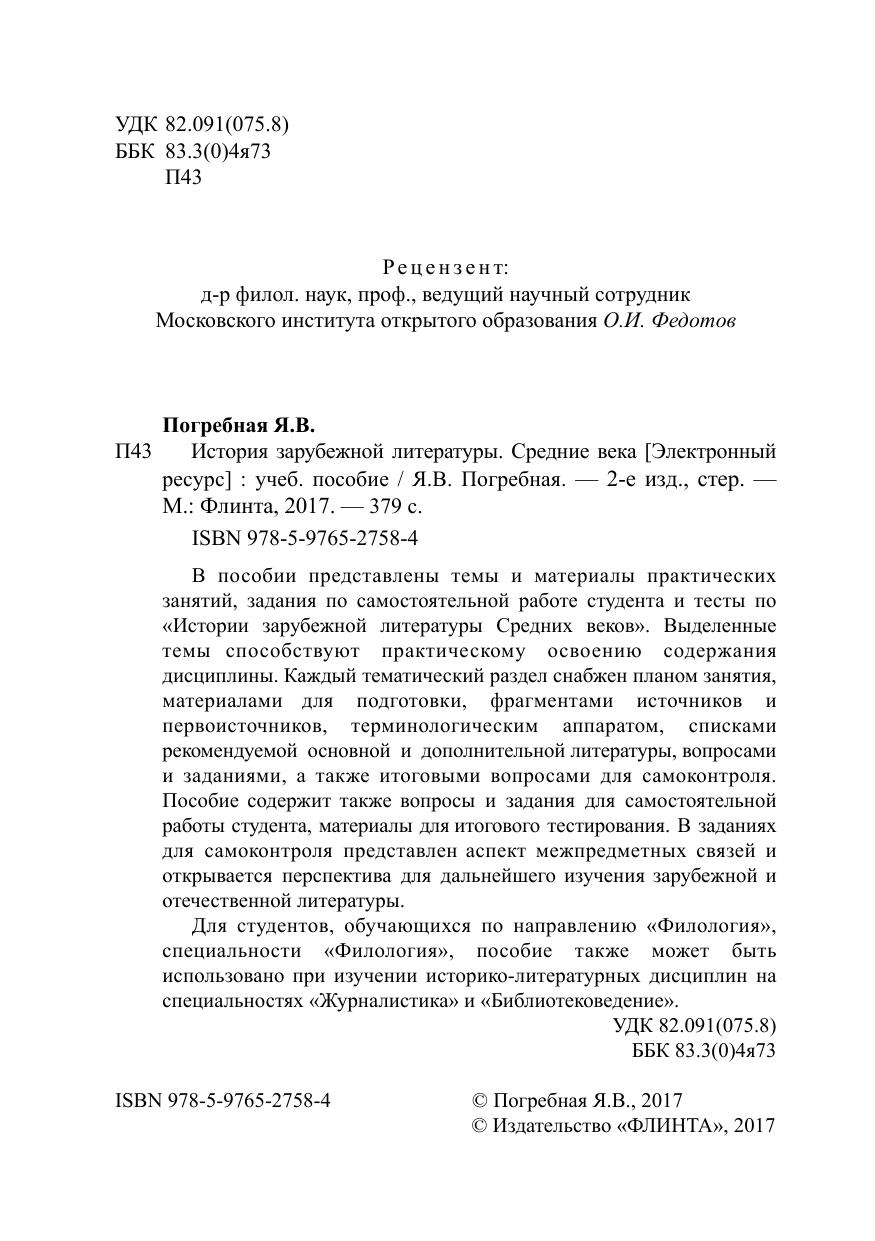 Для студентов, обучающихся по направлению «Филология», специальности «Филология», пособие также может быть использовано при изучении историко-литературных дисциплин на специальностях «Журналистика» и «Библиотековедение».