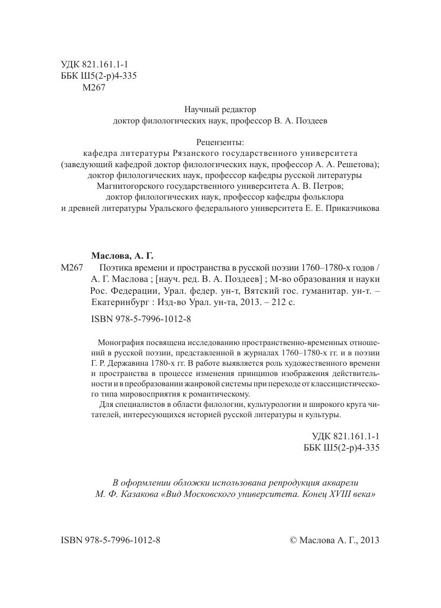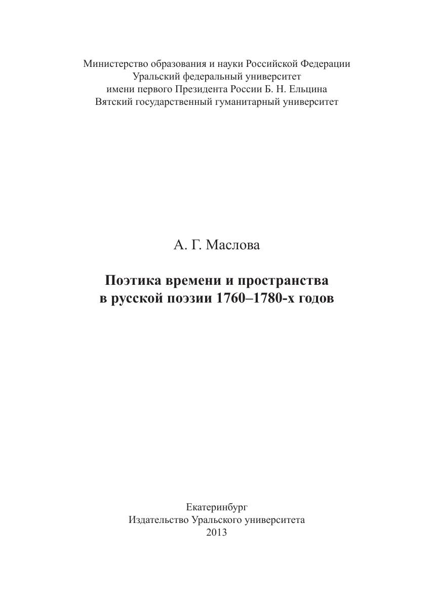 Поэтика времени и пространства в русской поэзии 1760–1780-х годов