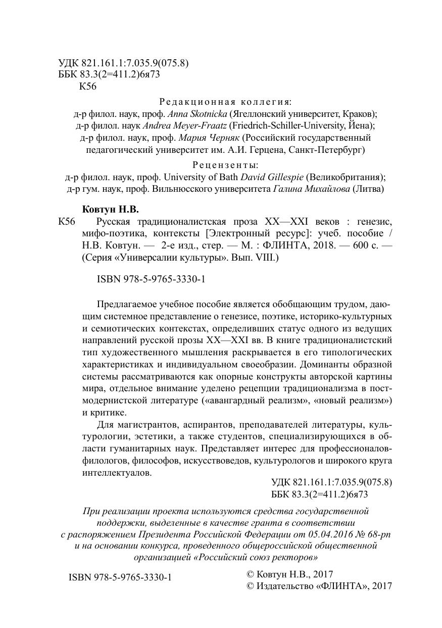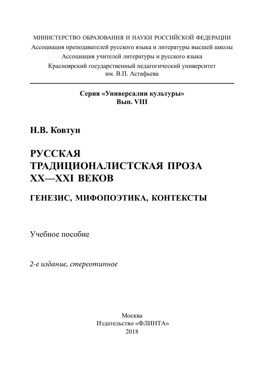 Русская традиционалистская проза XX—XXI веков: генезис, мифо-поэтика, контексты