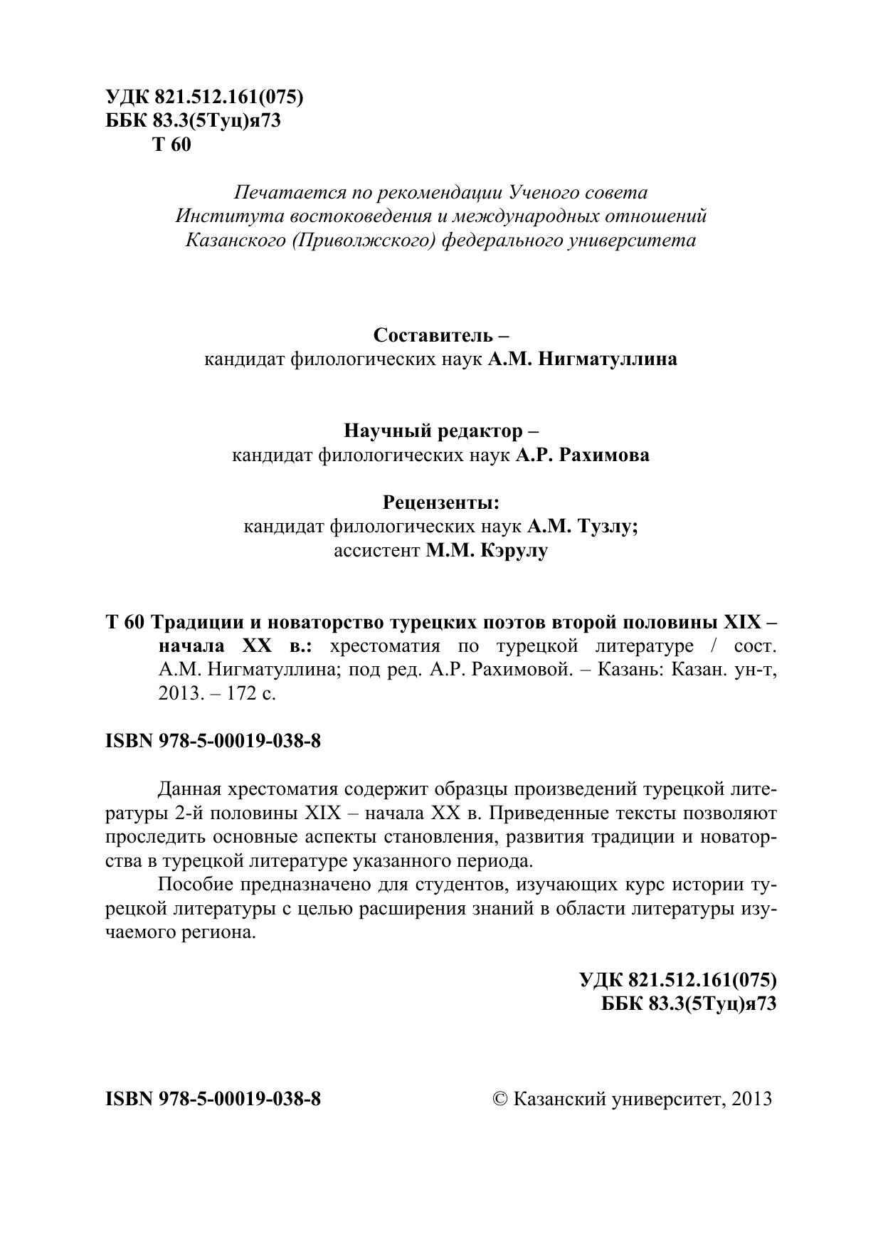 Традиции и новаторство турецких поэтов второй половины XIX – начала XX в.: хрестоматия по турецкой литературе