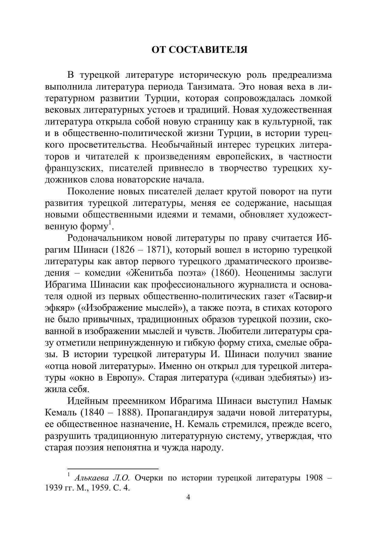 Данная хрестоматия содержит образцы произведений турецкой литературы 2-й половины XIX – начала XX в. Приведенные тексты позволяют проследить основные аспекты становления, развития традиции и новаторства в турецкой литературе указанного периода. Пособие предназначено для студентов, изучающих курс истории турецкой литературы с целью расширения знаний в области литературы изучаемого региона.