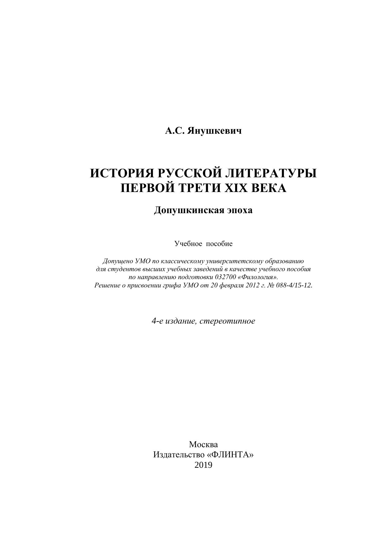История русской литературы первой трети XIX века. Допушкинская эпоха