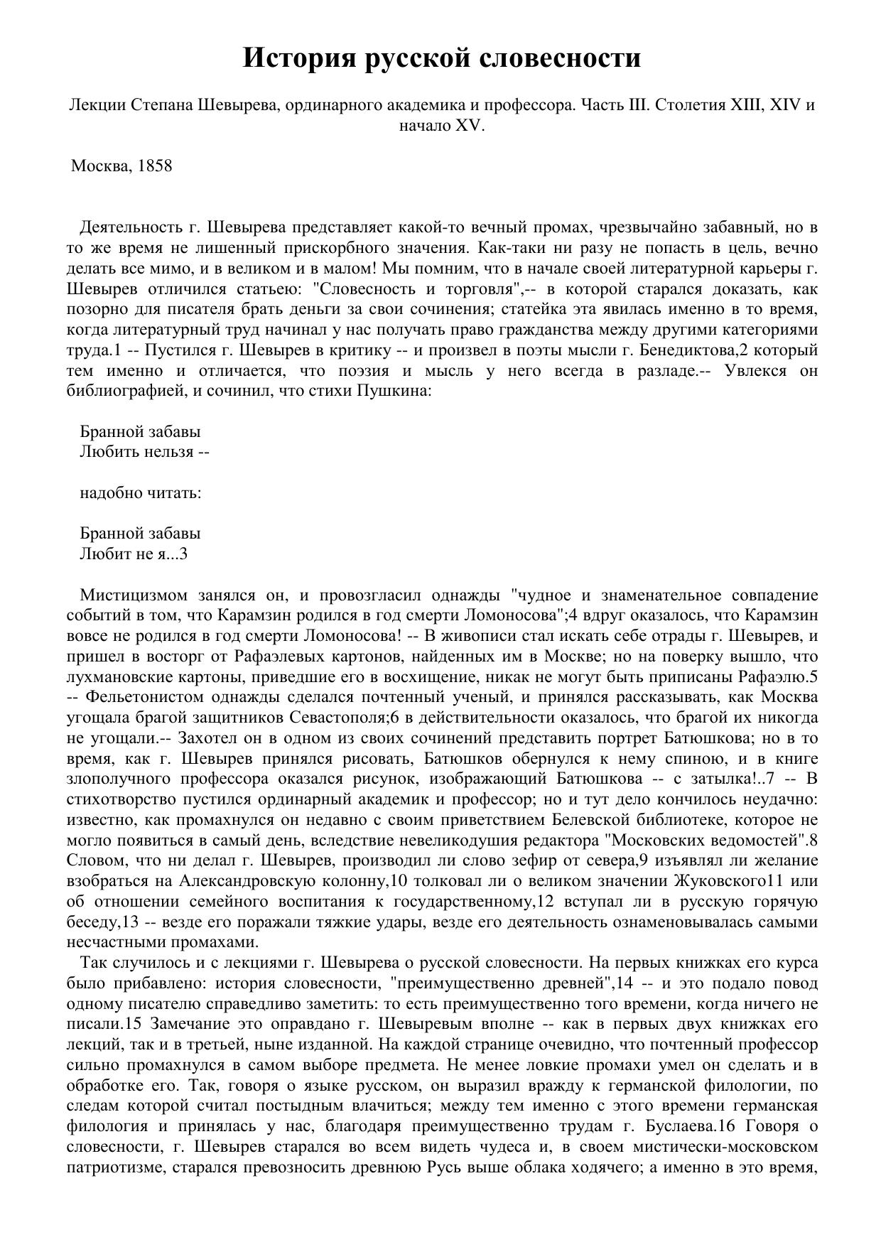 История русской словесности. Лекции Степана Шевырева, ординарного академика и профессора