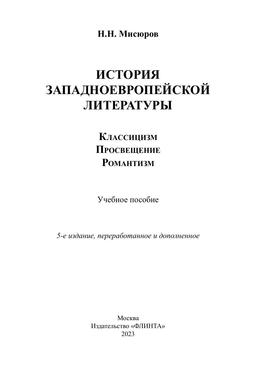 История западноевропейской литературы: Классицизм. Просвещение. Романтизм