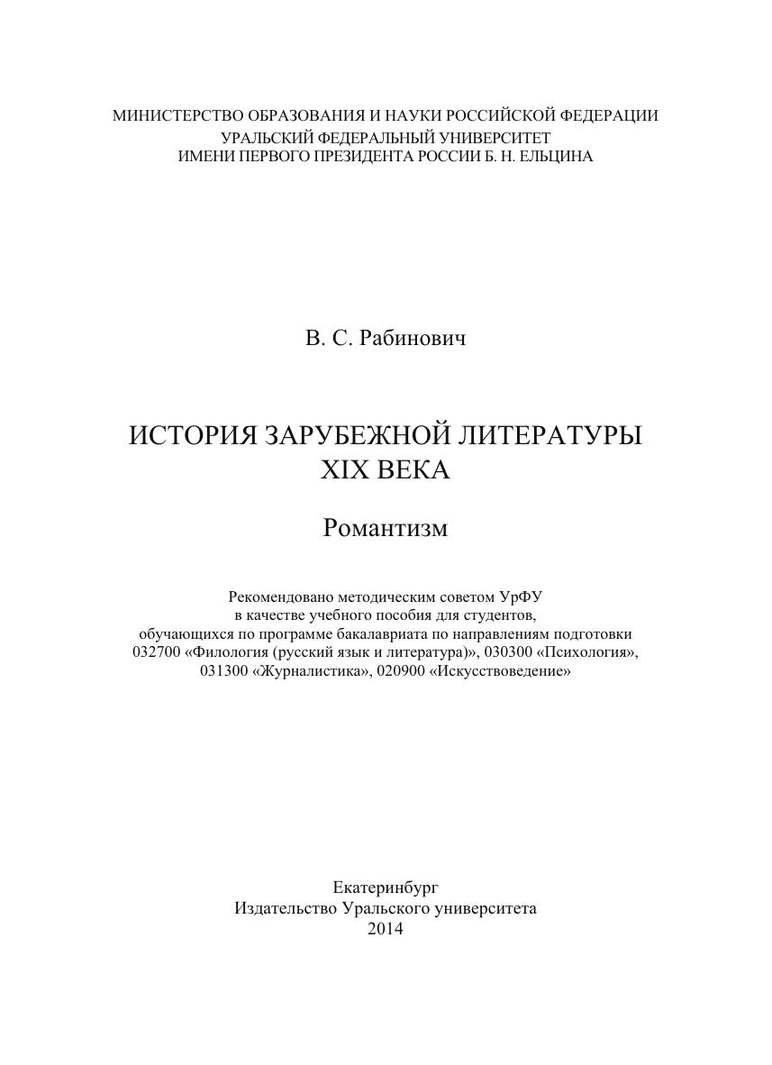История зарубежной литературы XIX века : Романтизм: учеб. пособие