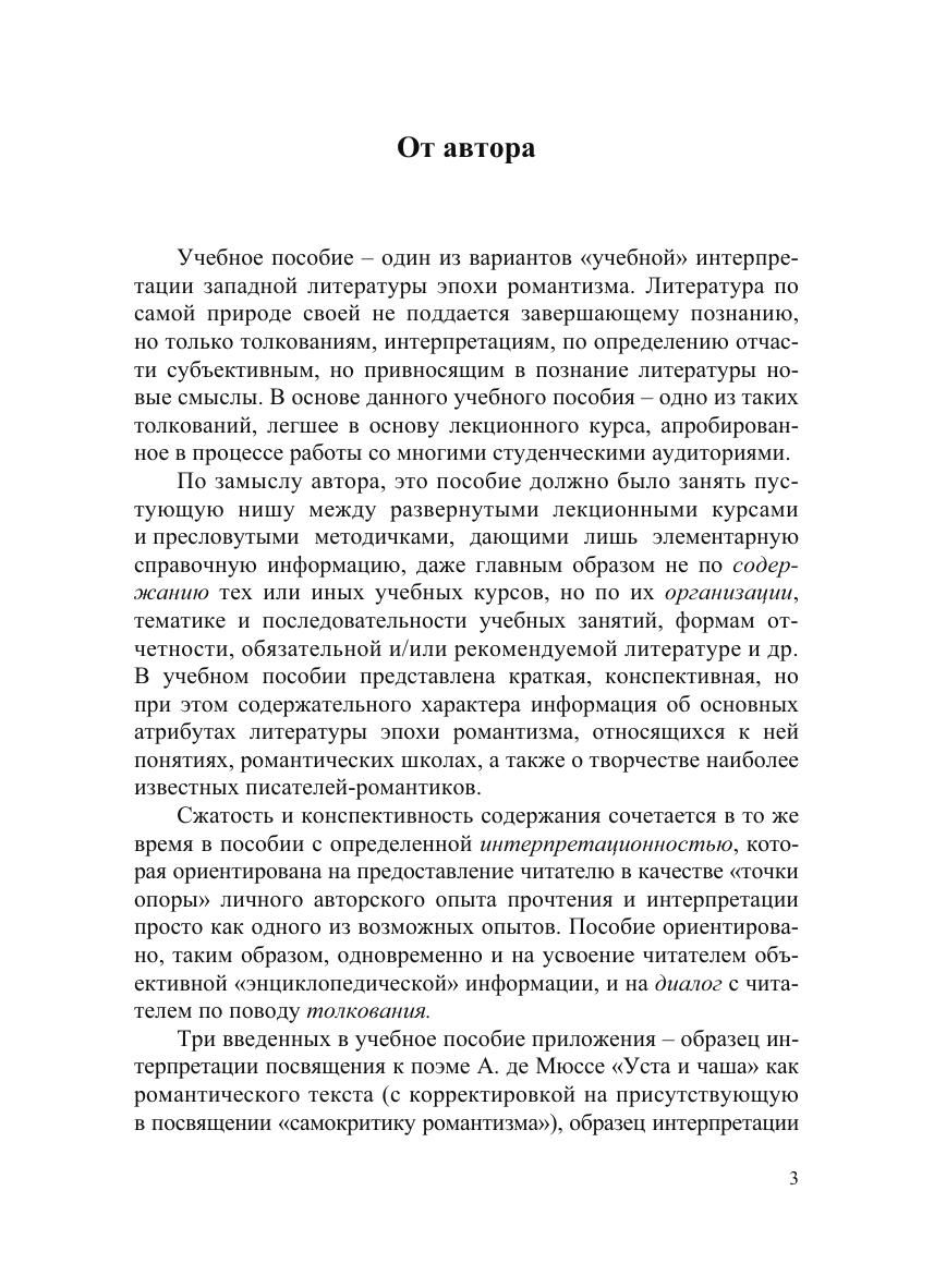 Учебное пособие предлагает сжатую характеристику романтизма как культурного феномена – как в его собственно «романтической» идентичности, так и в более широком культурном контексте (с одной стороны, Просвещение, с другой – «рубежные» феномены самокритики романтизма и творчество Генриха Гейне как «постромантический» феномен). В пособии представлена характеристика основных художественных доминант творчества ряда писателей-романтиков, а также их отдельных произведений, в приложениях – варианты анализа отдельных поэтических текстов, относящихся к эпохе романтизма, в аспекте отражения в них «общеромантических» доминант и в интертекстуальных контекстах. Адресовано студентам гуманитарных факультетов, изучающим историю западной литературы.