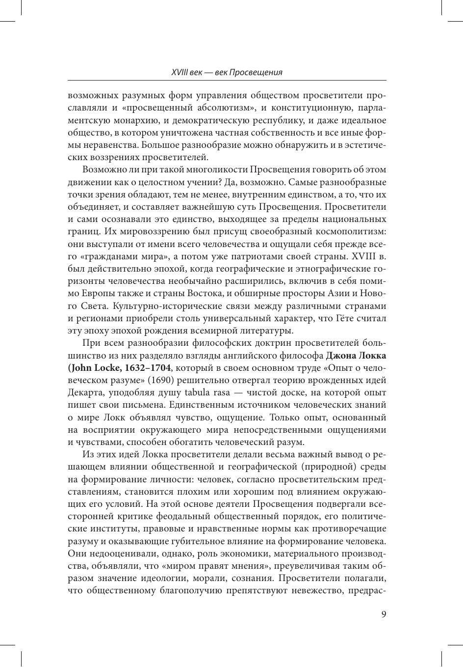 В учебнике рассматриваются важнейшие закономерности развития литературы эпохи Просвещения - одного из ярких периодов в истории мировой литературы. Анализируется творчество наиболее выдающихся писателей Англии, Франции, Испании, Италии, США и Германии: Дефо, Свифта, Филдинга, Стерна, Вальтера, Дидро, Руссо, Лессинга, Шиллера, Гете и др.