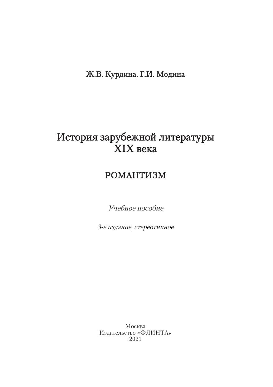 История зарубежной литературы XIX века. Романтизм: учебное пособие