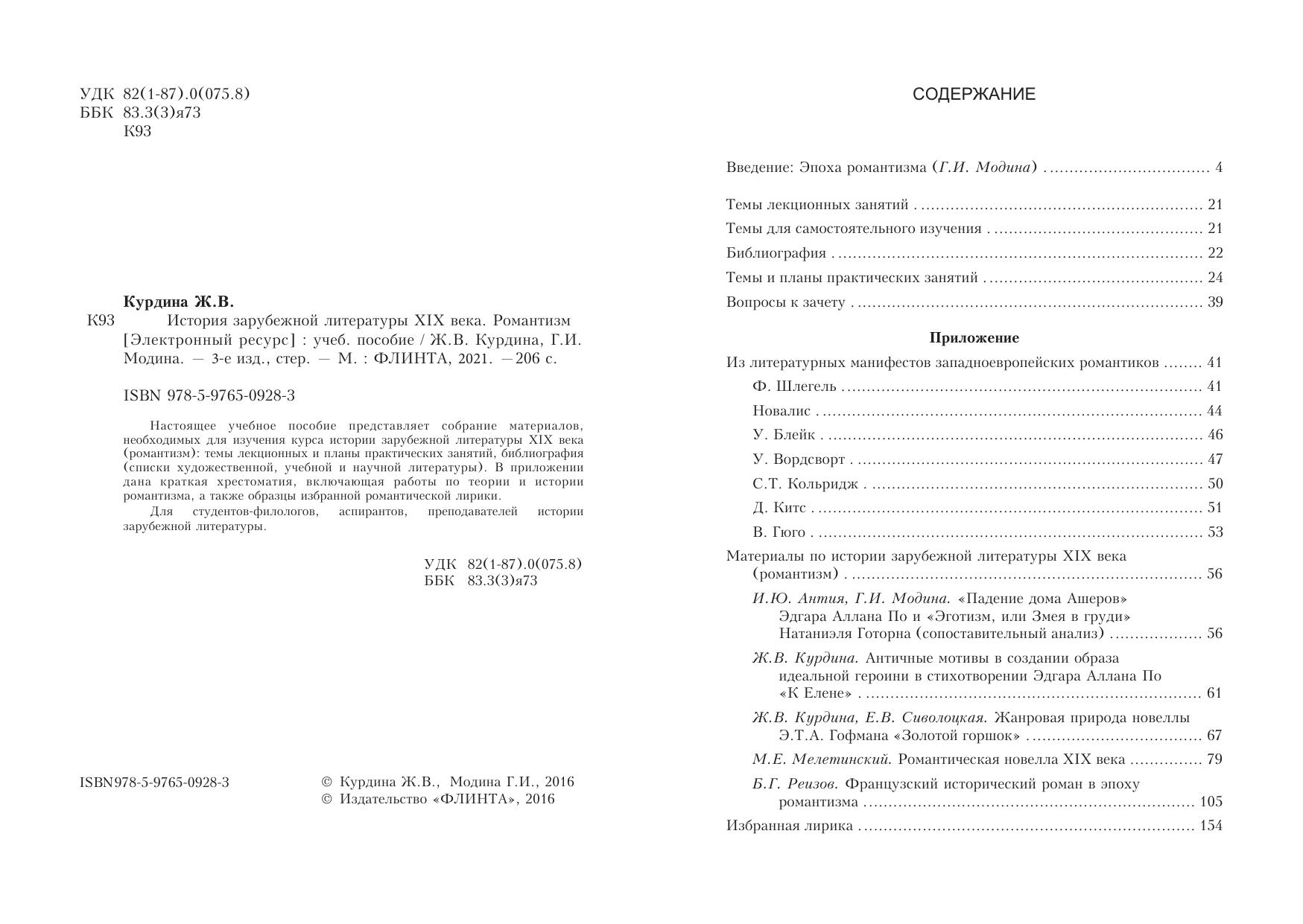 Настоящее учебное пособие представляет собрание материалов, необходимых для изучения курса истории зарубежной литературы XIX века (романтизм): темы лекционных и планы практических занятий, библиография (списки художественной, учебной и научной литературы). В приложении дана краткая хрестоматия, включающая работы по теории и истории романтизма, а также образцы избранной романтической лирики. Для студентов-филологов, аспирантов, преподавателей истории зарубежной литературы.
