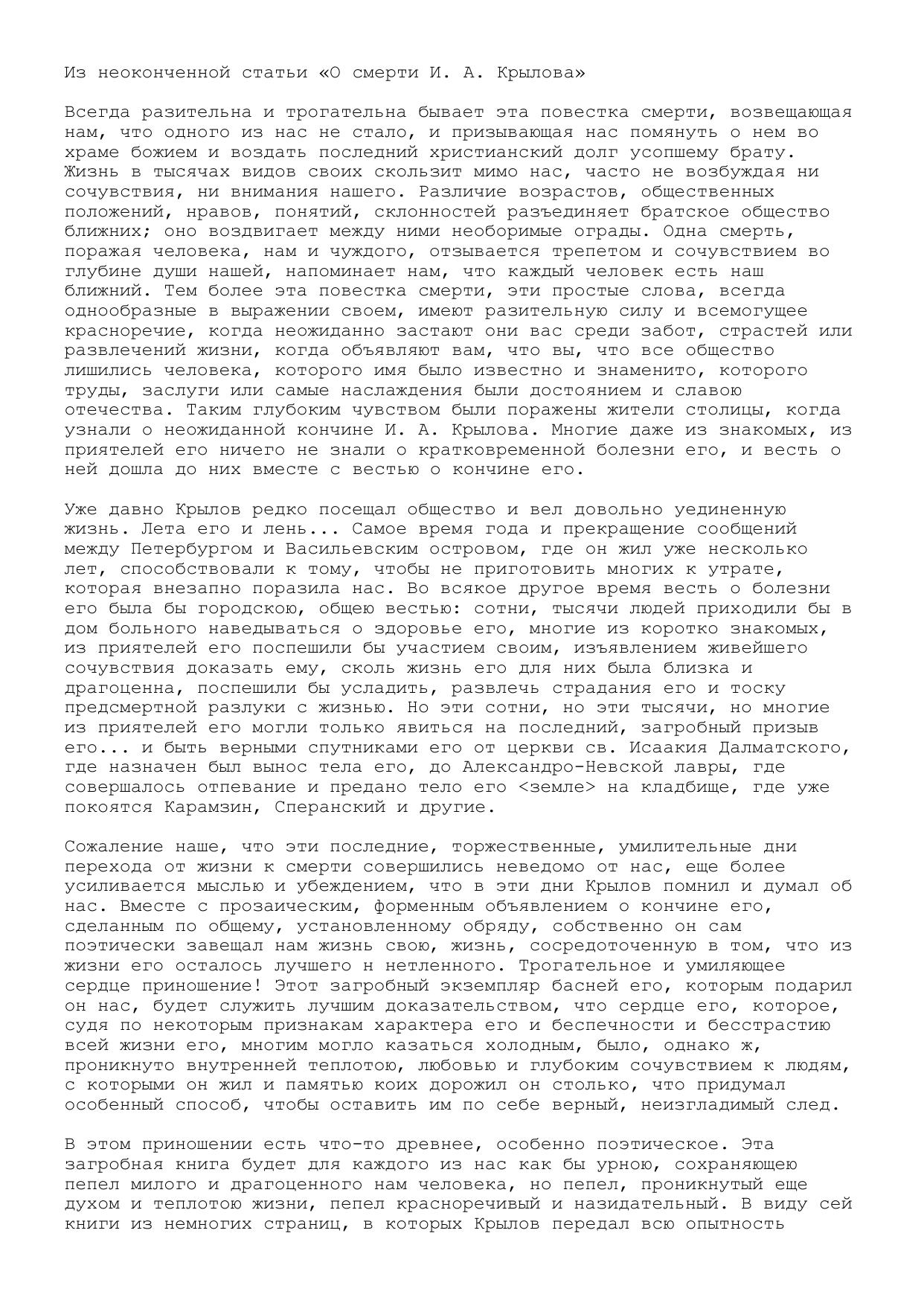 Из неоконченной статьи О смерти И. А. Крылова