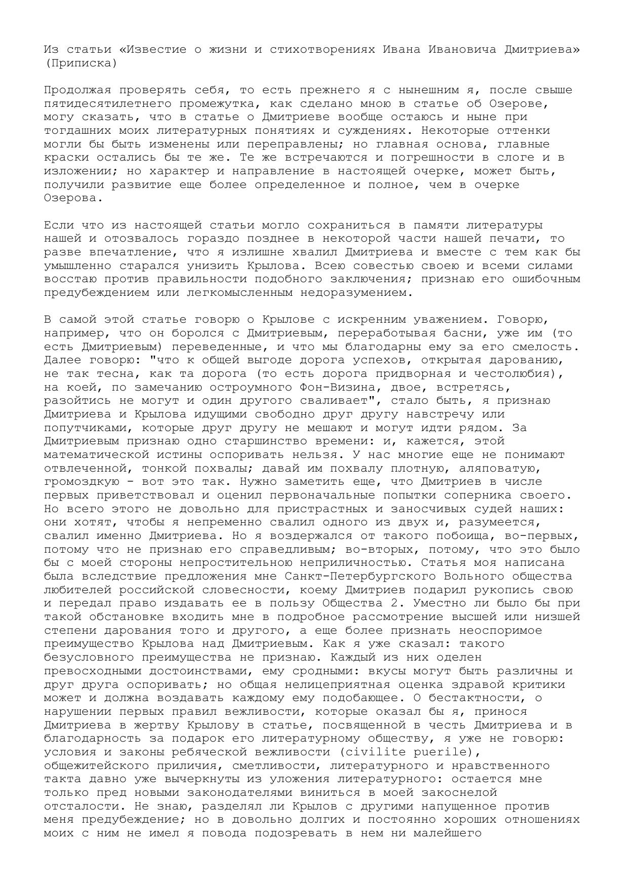 Из статьи Известие о жизни и стихотворениях Ивана Ивановича Дмитриева (Приписка)