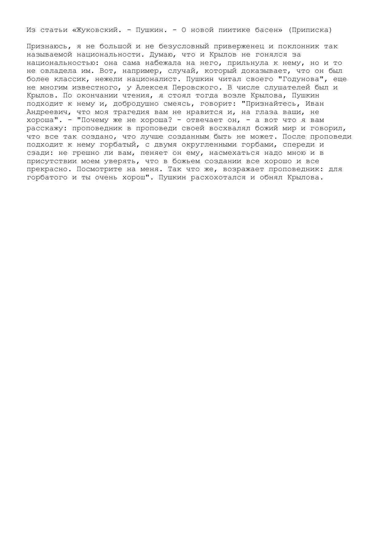 Из статьи Жуковский. - Пушкин. - О новой пиитике басен (Приписка)