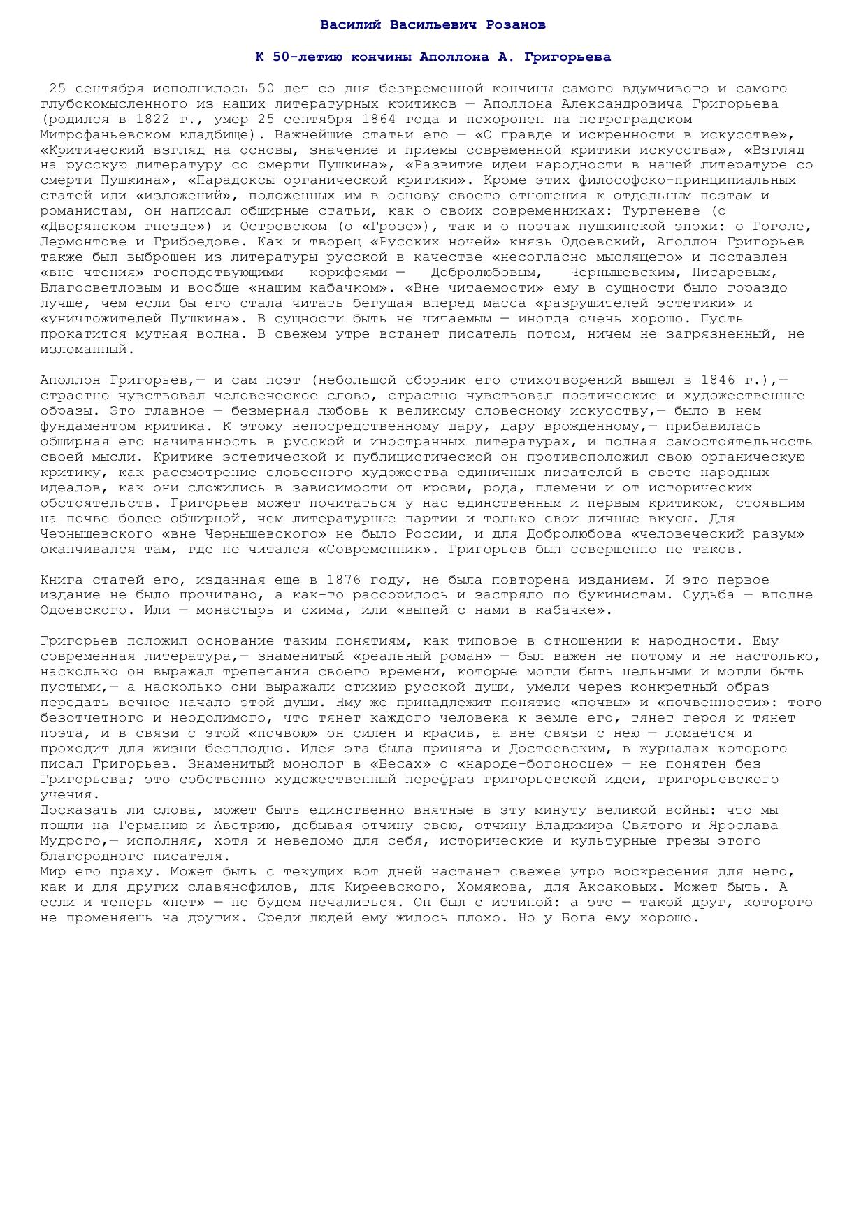 К 50-летию кончины Ап. А.Григорьева