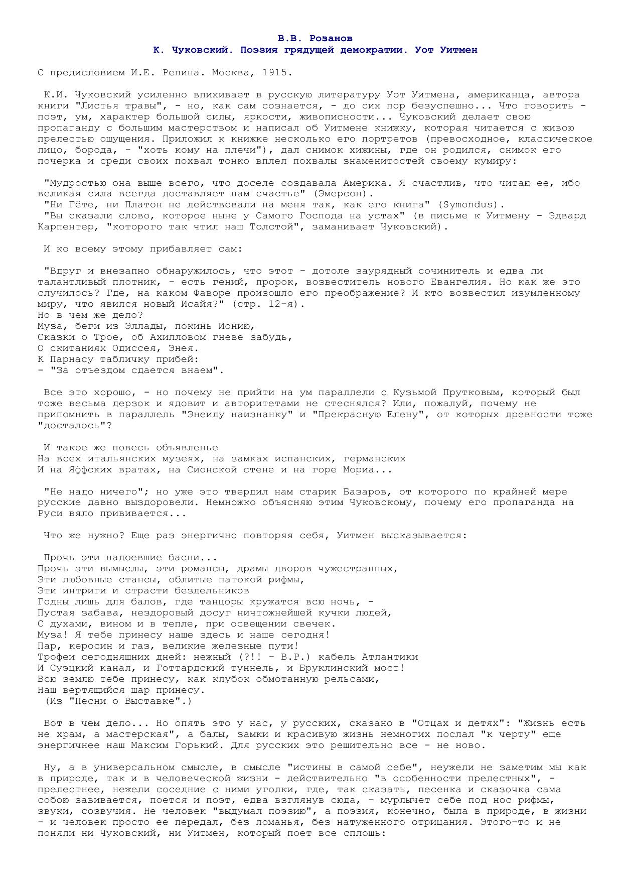 К.Чуковский. Поэт грядущей демократии Уолт Уитмэн <рец.>