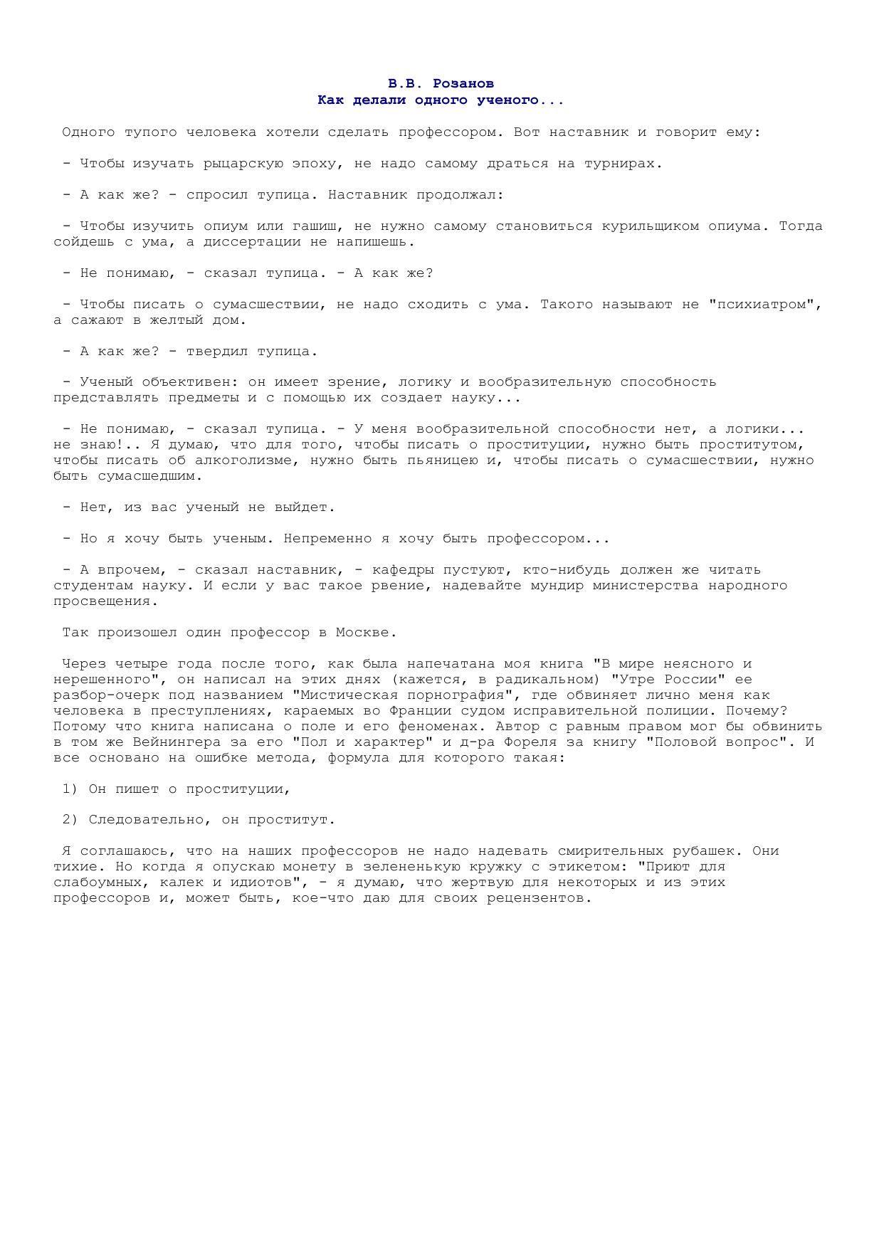 Как делали одного ученого... <о рец. на кн. Розанова "В мире неясного и нерешенного»