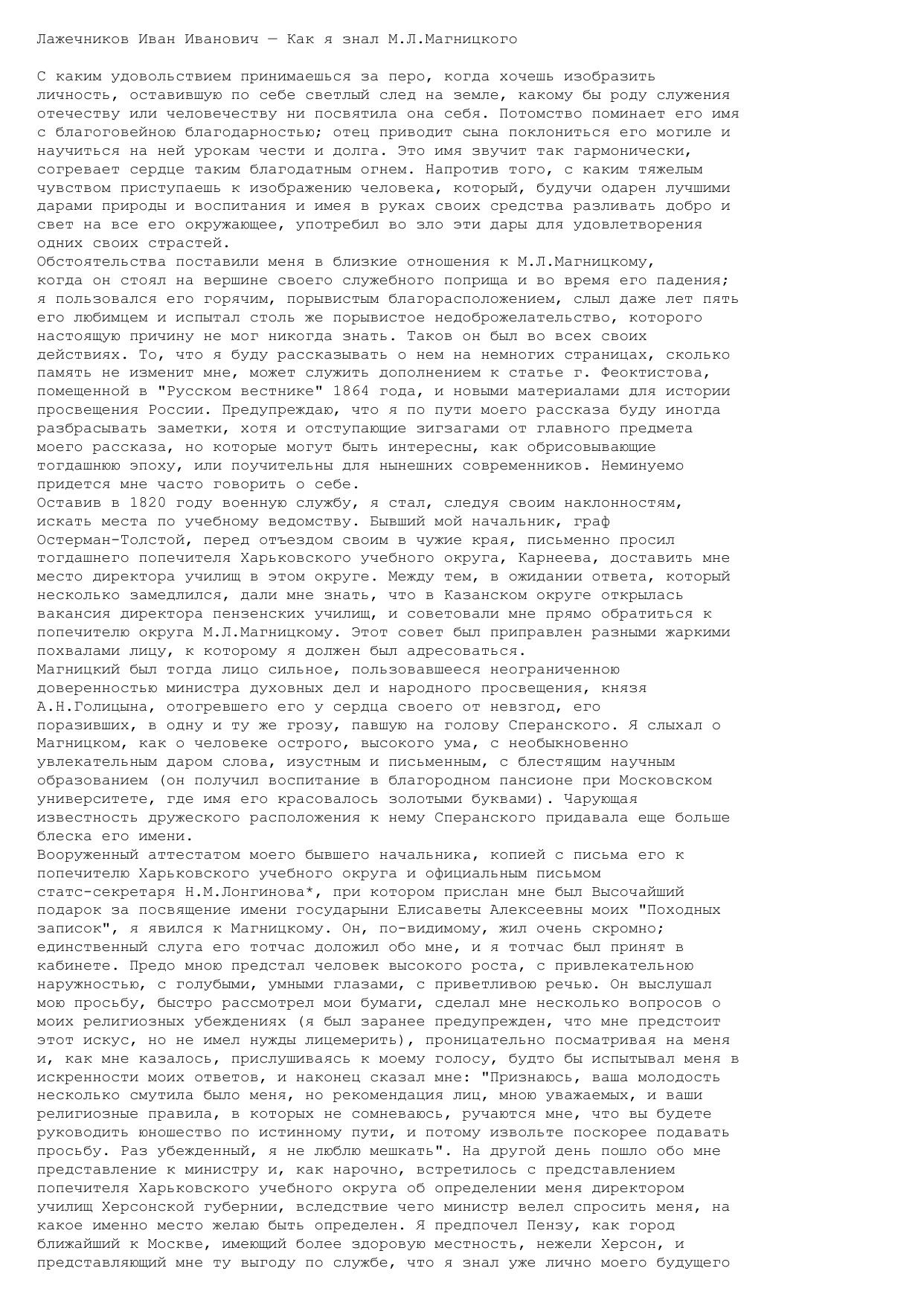 Как я знал М.Л.Магницкого