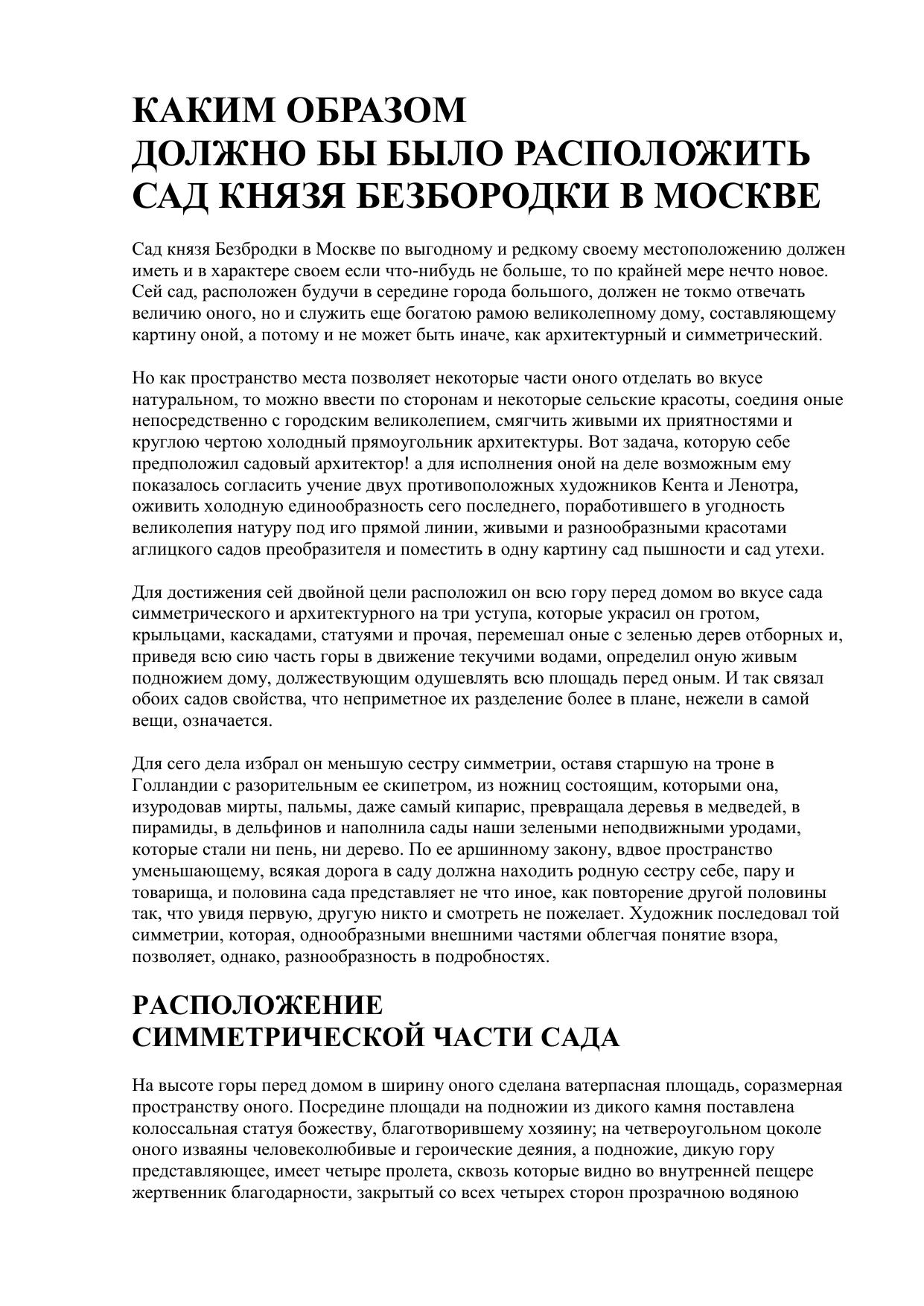 Каким образом должно было бы расположить сад князя Безбородки в Москве