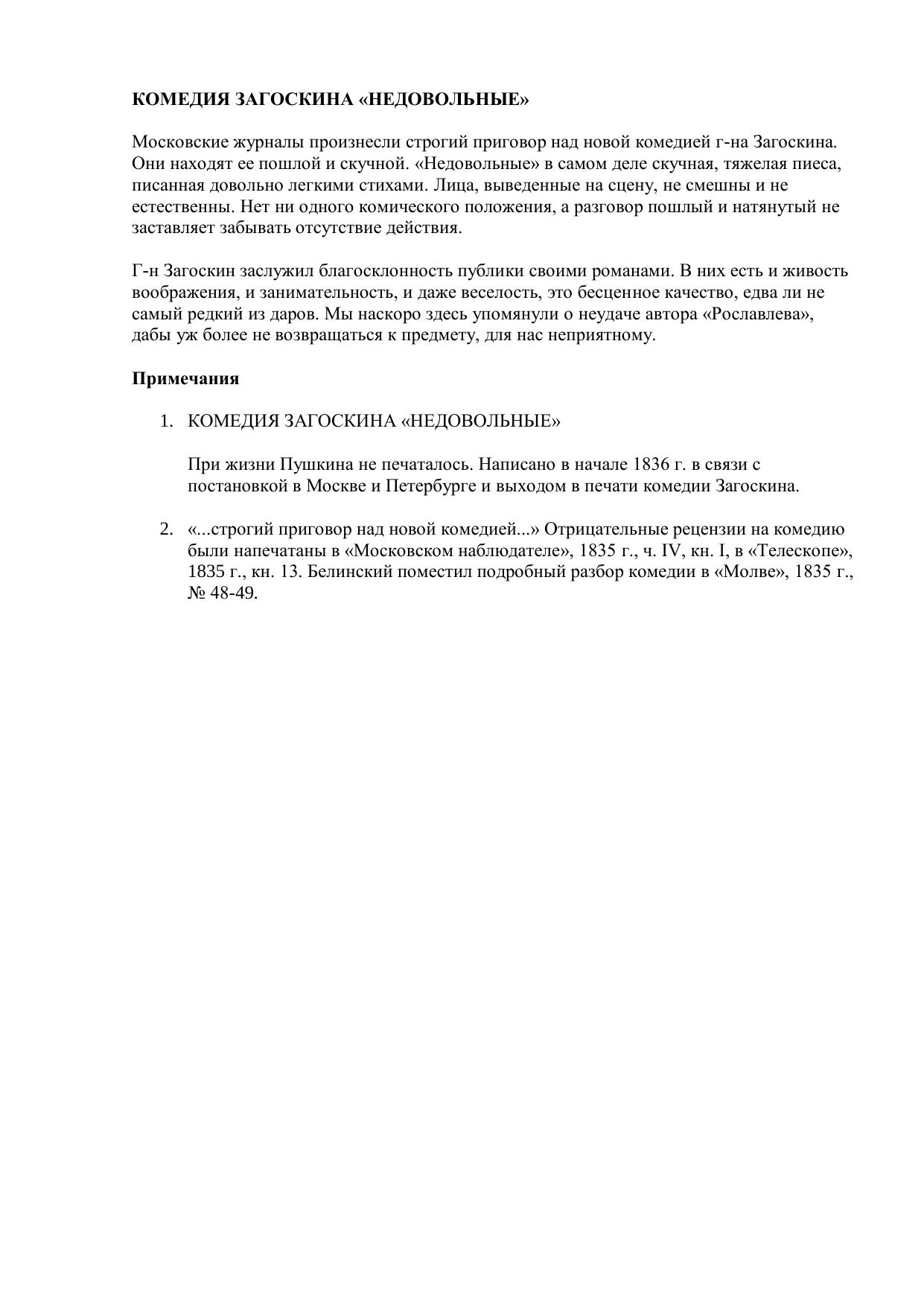 Комедия Загоскина "Недовольные"