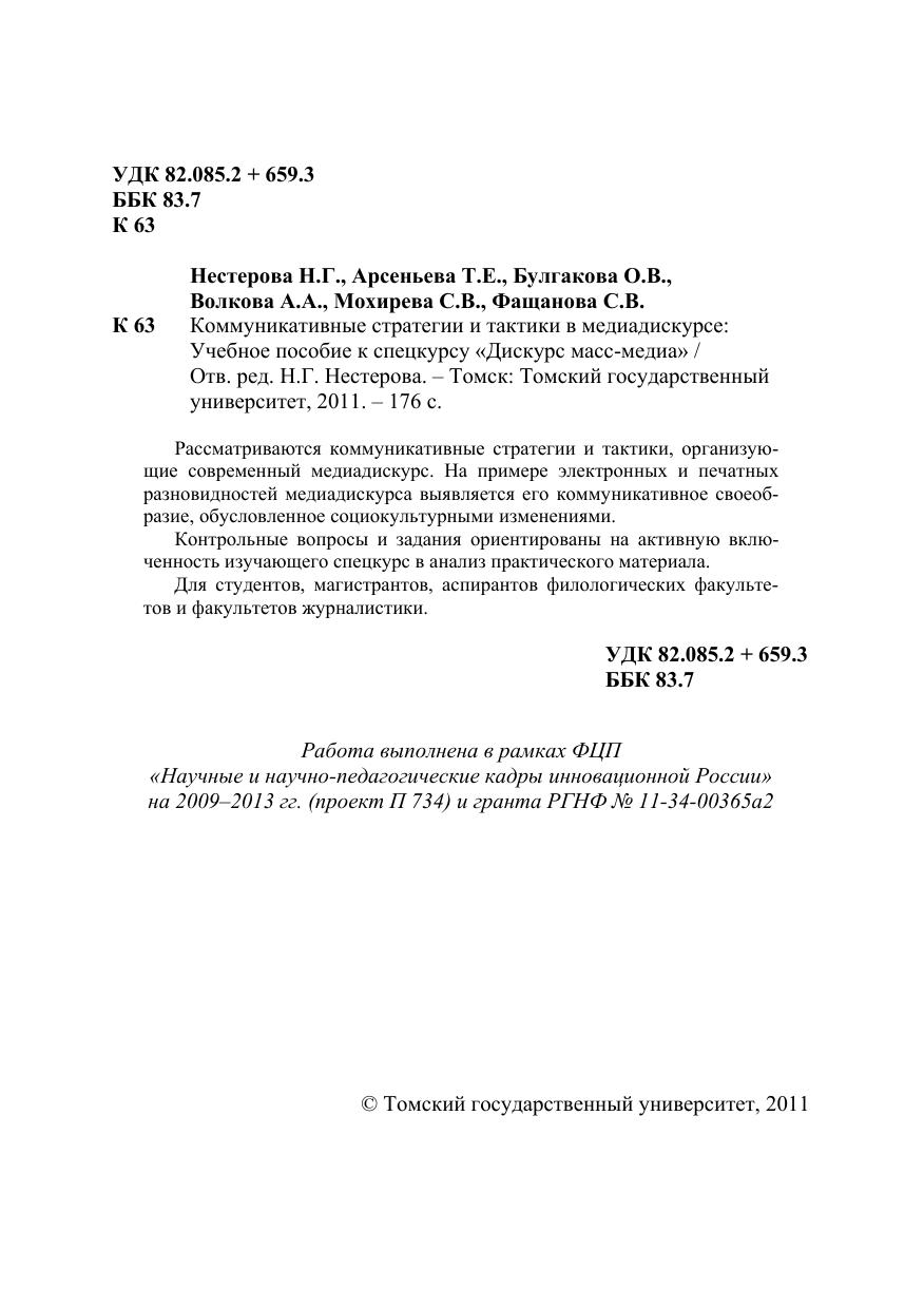 Коммуникативные стратегии и тактики в медиадискурсе