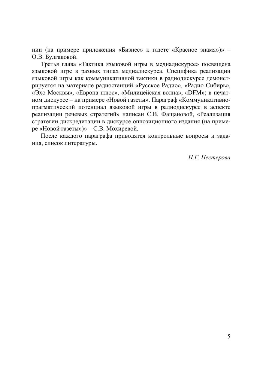 Рассматриваются коммуникативные стратегии и тактики, организующие современный медиадискурс. На примере электронных и печатных разновидностей медиадискурса выявляется его коммуникативное своеобразие, обусловленное социокультурными изменениями. Контрольные вопросы и задания ориентированы на активную включенность изучающего спецкурс в анализ практического материала. Для студентов, магистрантов, аспирантов филологических факультетов и факультетов журналистики.