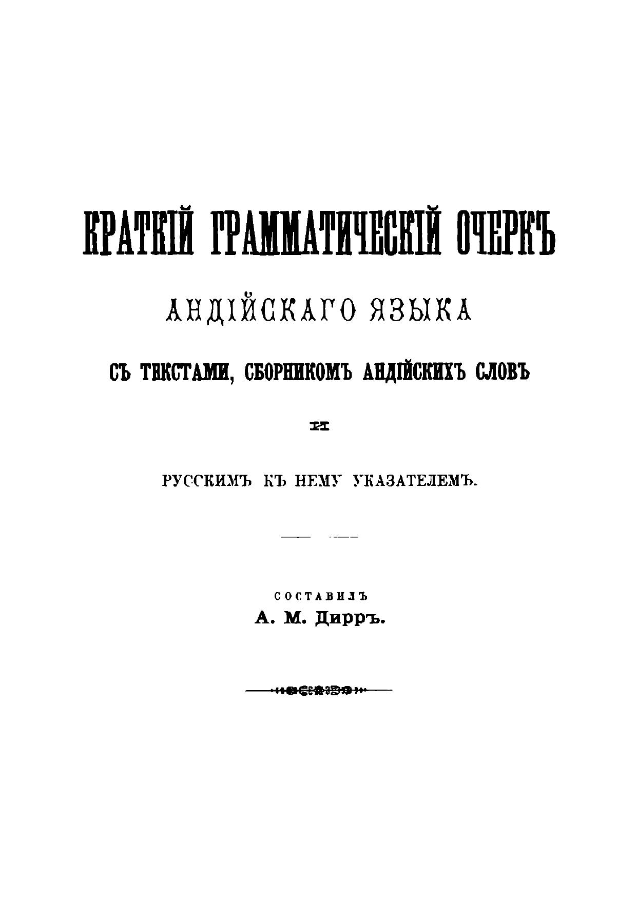 Краткий грамматический очерк андийского языка