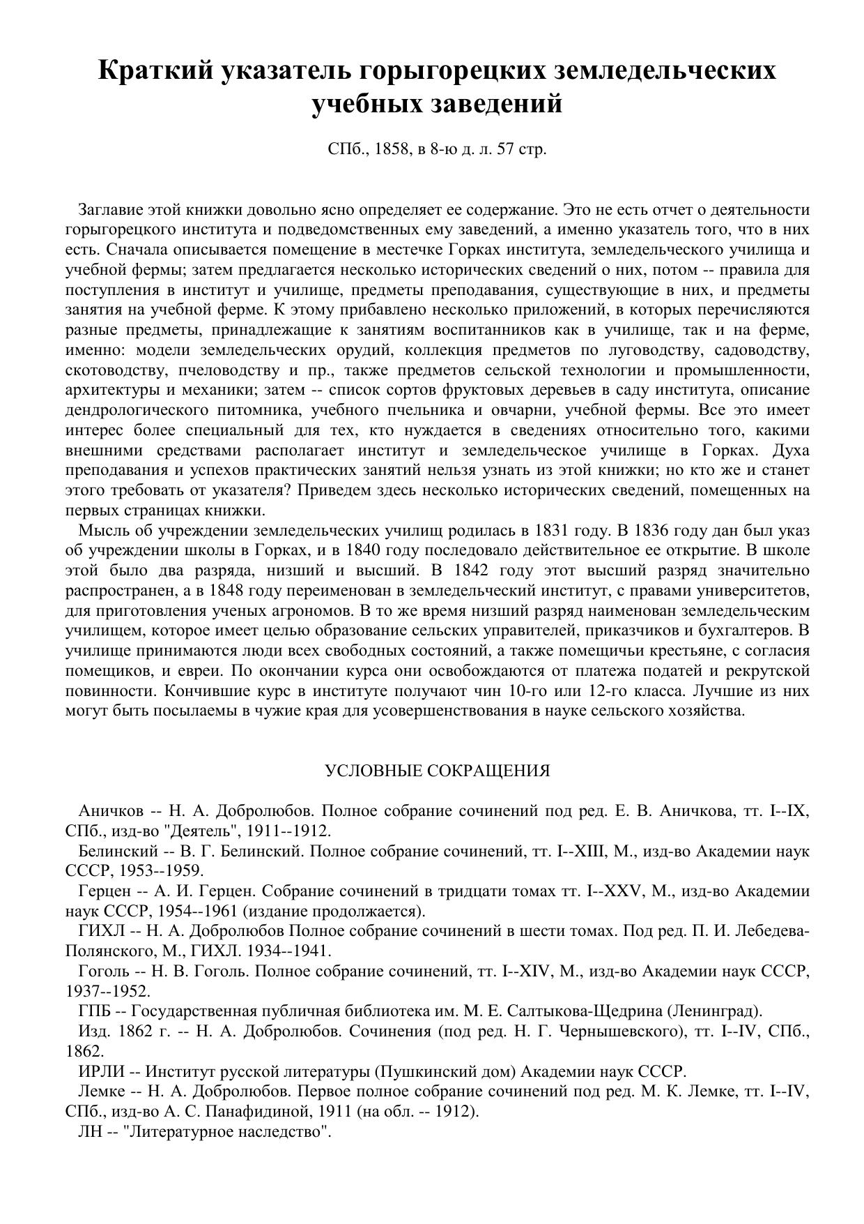 Краткий указатель горыгорецких земледельческих учебных заведений