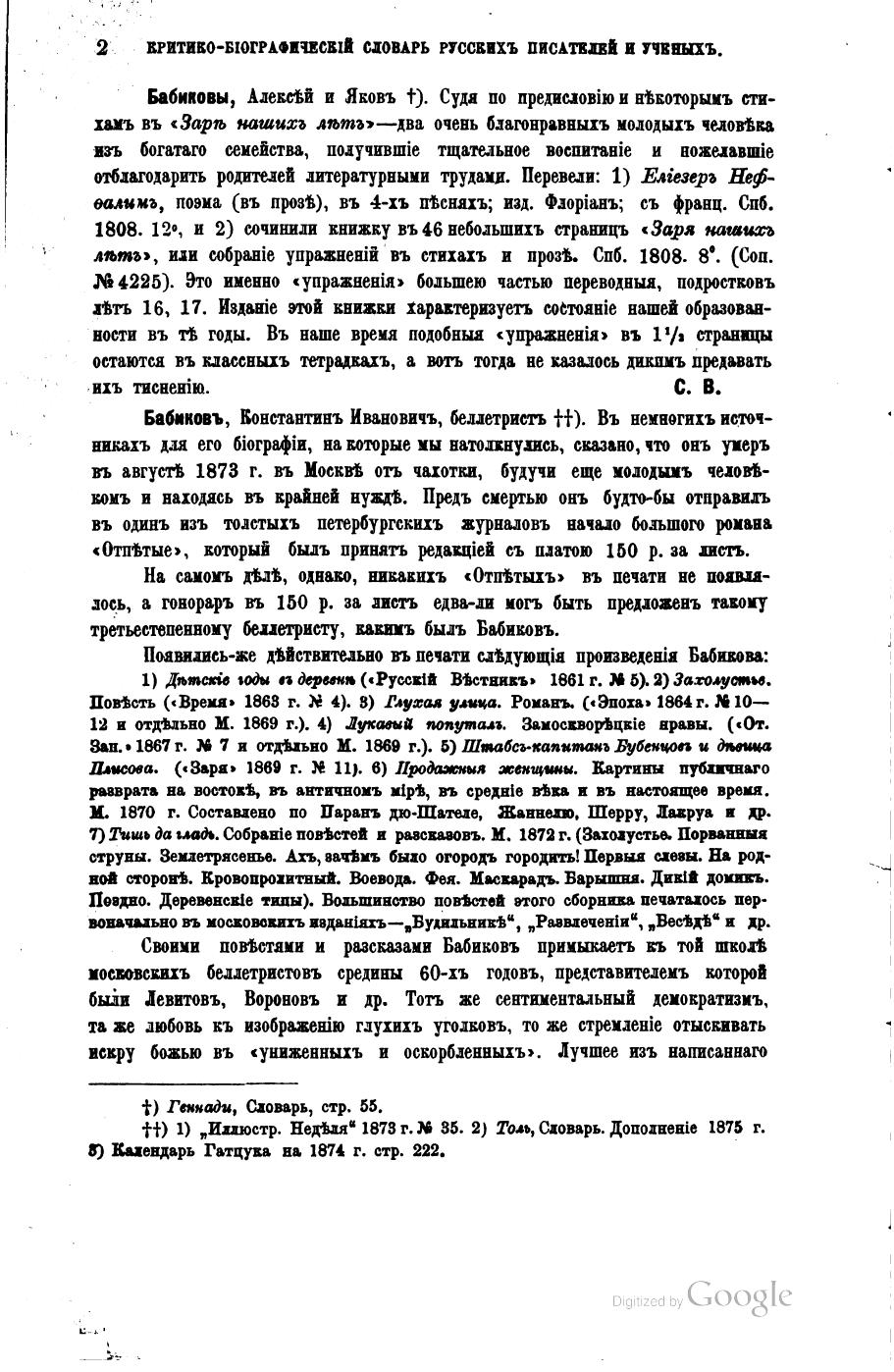 Критико-биографический словарь русских писателей и ученых. От начала русской образованности до наших дней. Том II