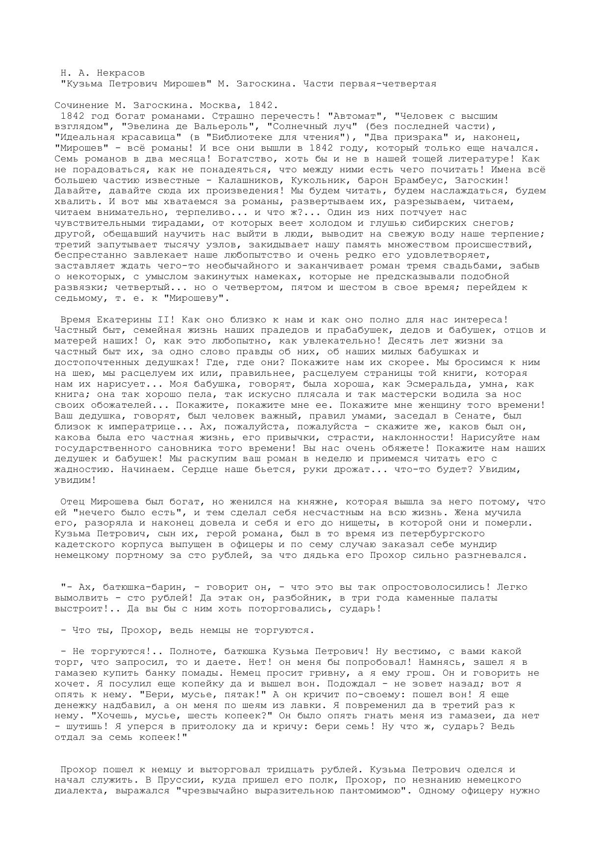 Кузьма Петрович Мирошев М. Загоскина. Части первая-четвертая