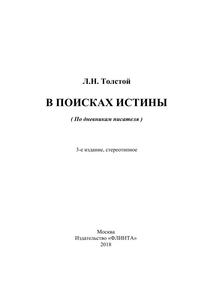 Л.Н. Толстой. В поисках истины (по дневникам писателя)