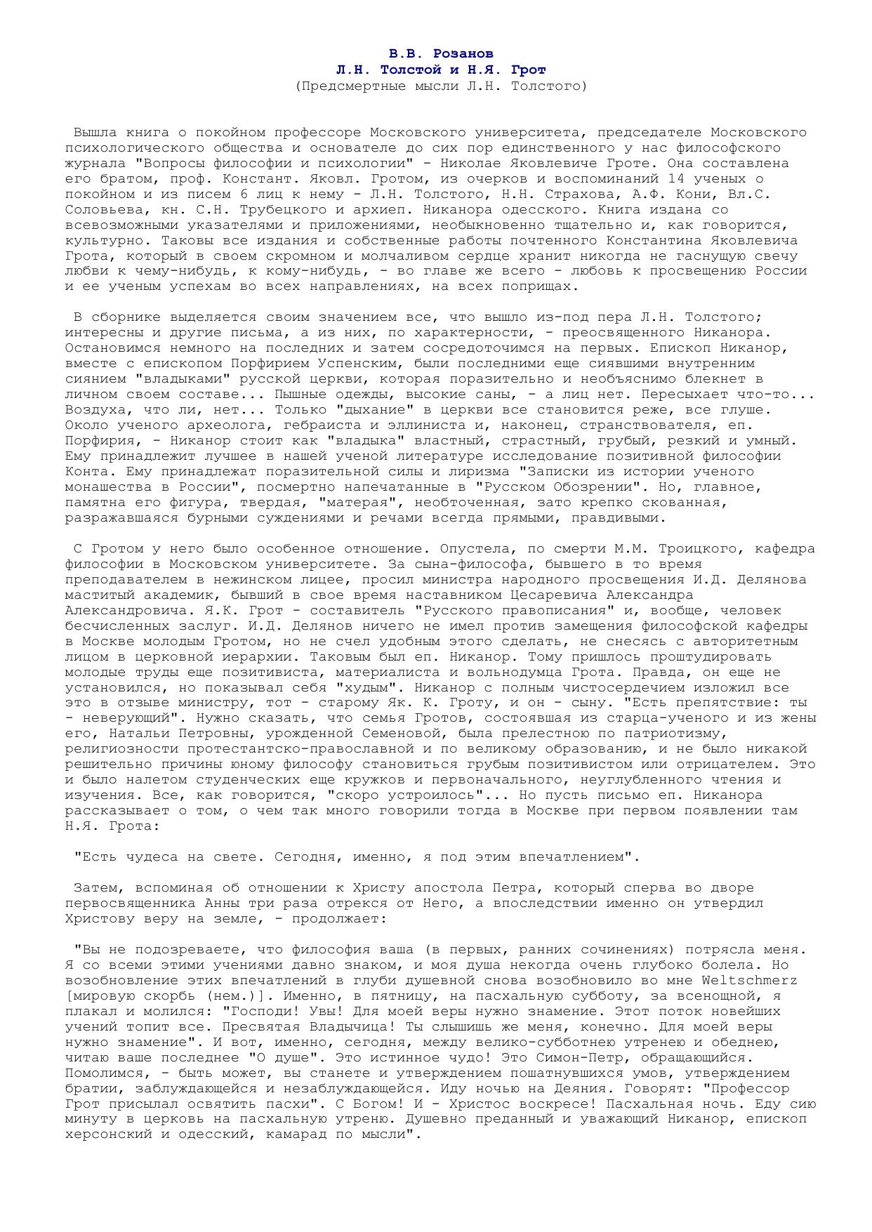 Л.Н.Толстой и Н.Я.Грот (Предсмертные мысли Л.Н.Толстого)