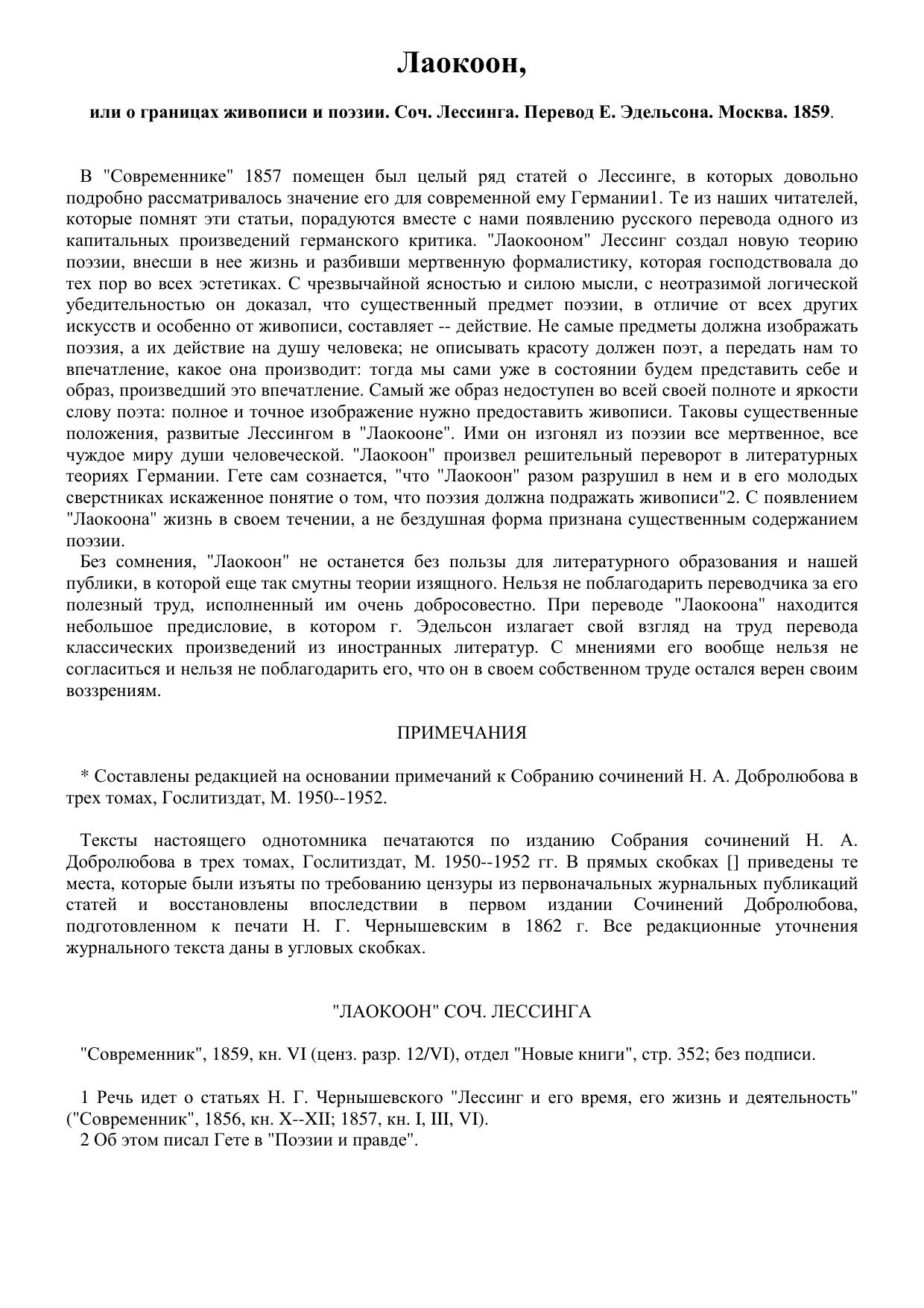 Лаокоон или о границах живописи и поэзии. Соч. Лессинга. Перевод Е. Эдельсона