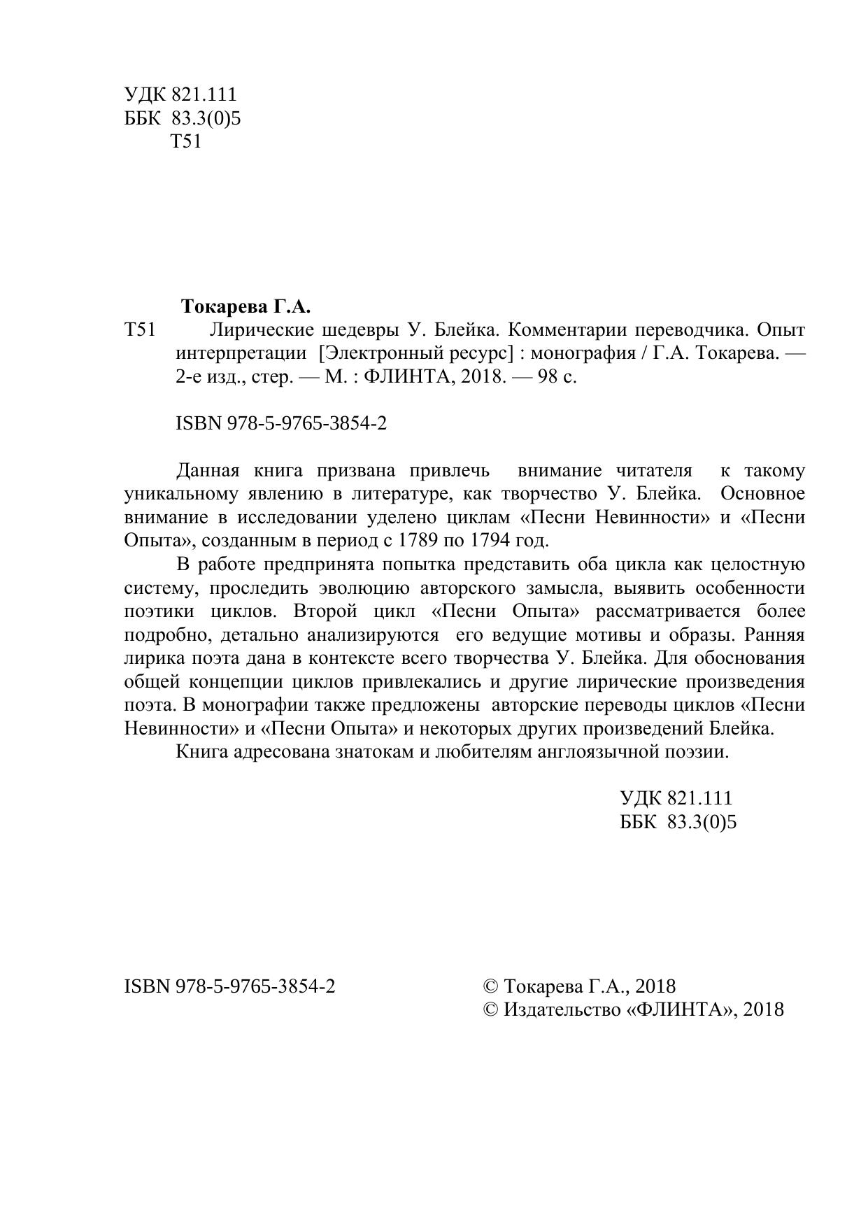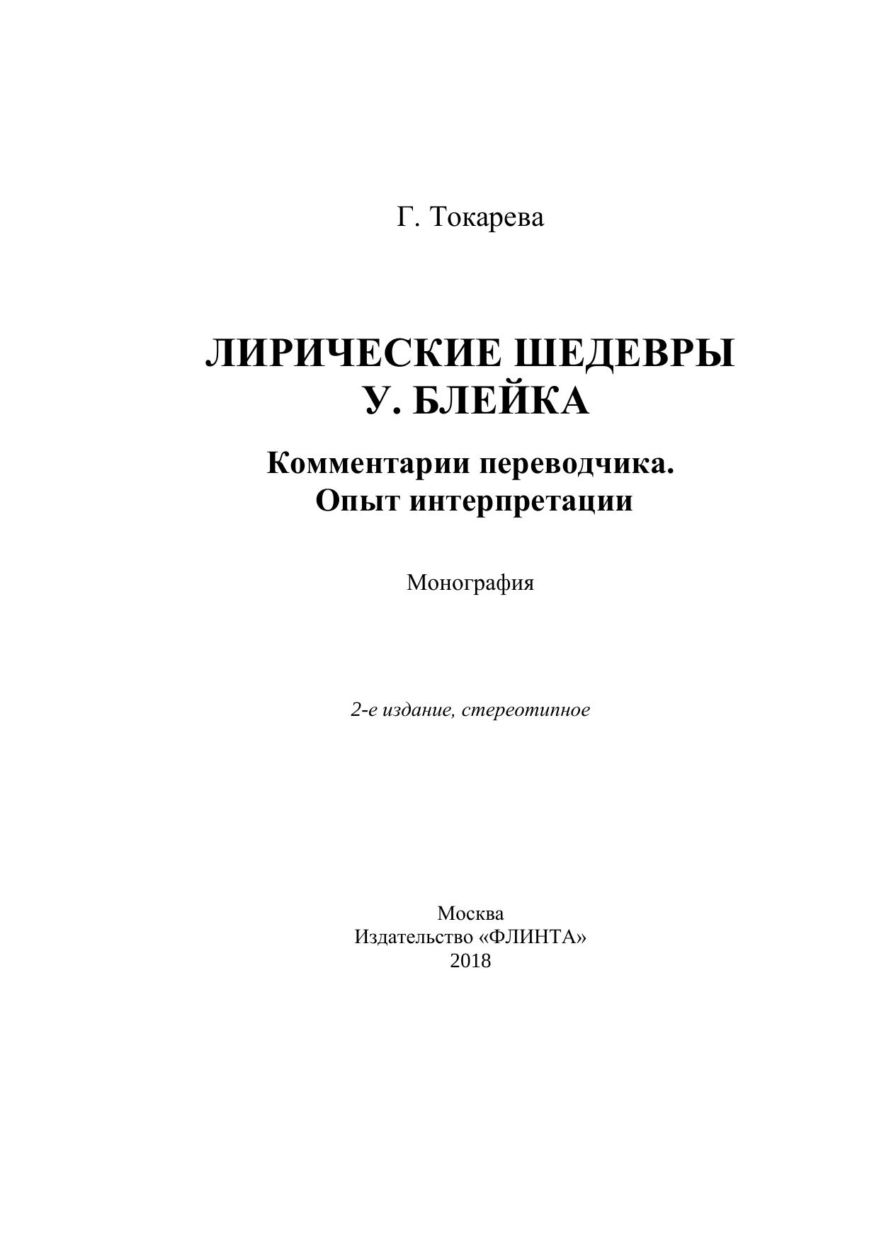 Лирические шедевры У. Блейка. Комментарии переводчика. Опыт интерпретации