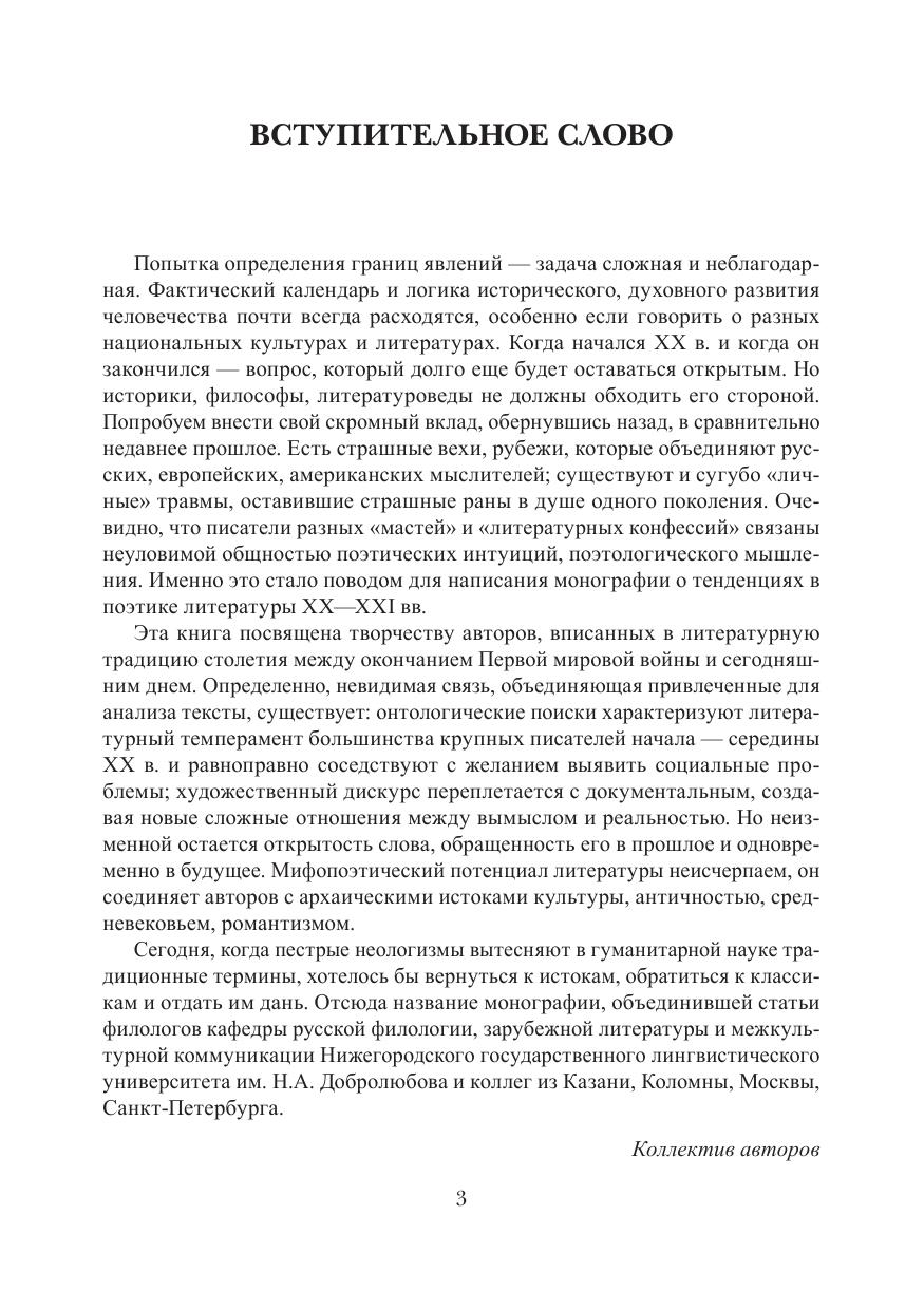Монография посвящена творчеству авторов, вписанных в литературную традицию столетия между окончанием Первой мировой войны и сегодняшним днем. Определенно, невидимая связь, объединяющая привлеченные для анализа тексты, существует: онтологические поиски характеризуют литературный темперамент большинства крупных писателей начала — середины ХХ в. и равноправно соседствуют с желанием выявить социальные проблемы; художественный дискурс переплетается с документальным, создавая новые сложные отношения между вымыслом и реальностью. Но неизменной остается открытость слова, обращенность его в прошлое и одновременно в будущее.