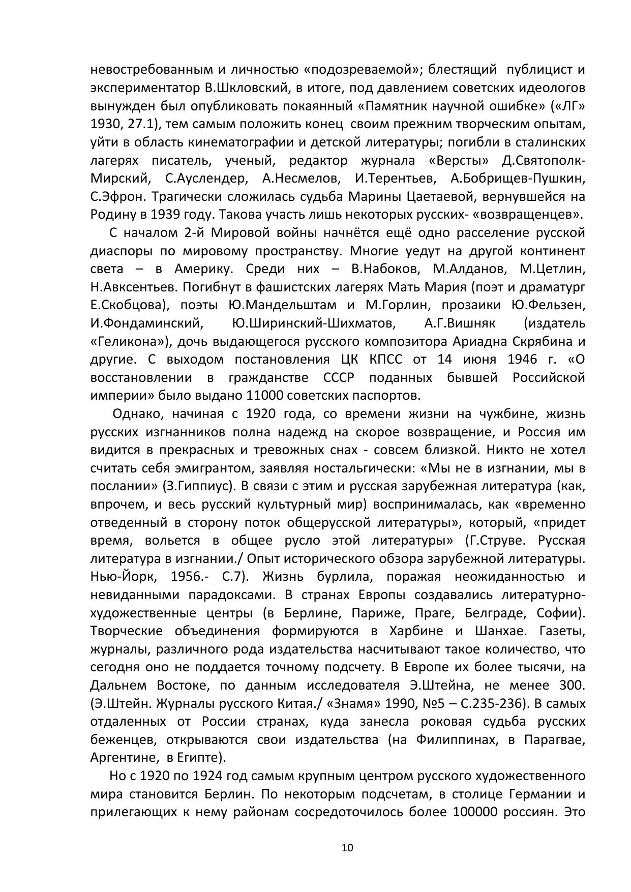 Литература русского зарубежья (1920—1950 гг. — первая эмиграционная волна)