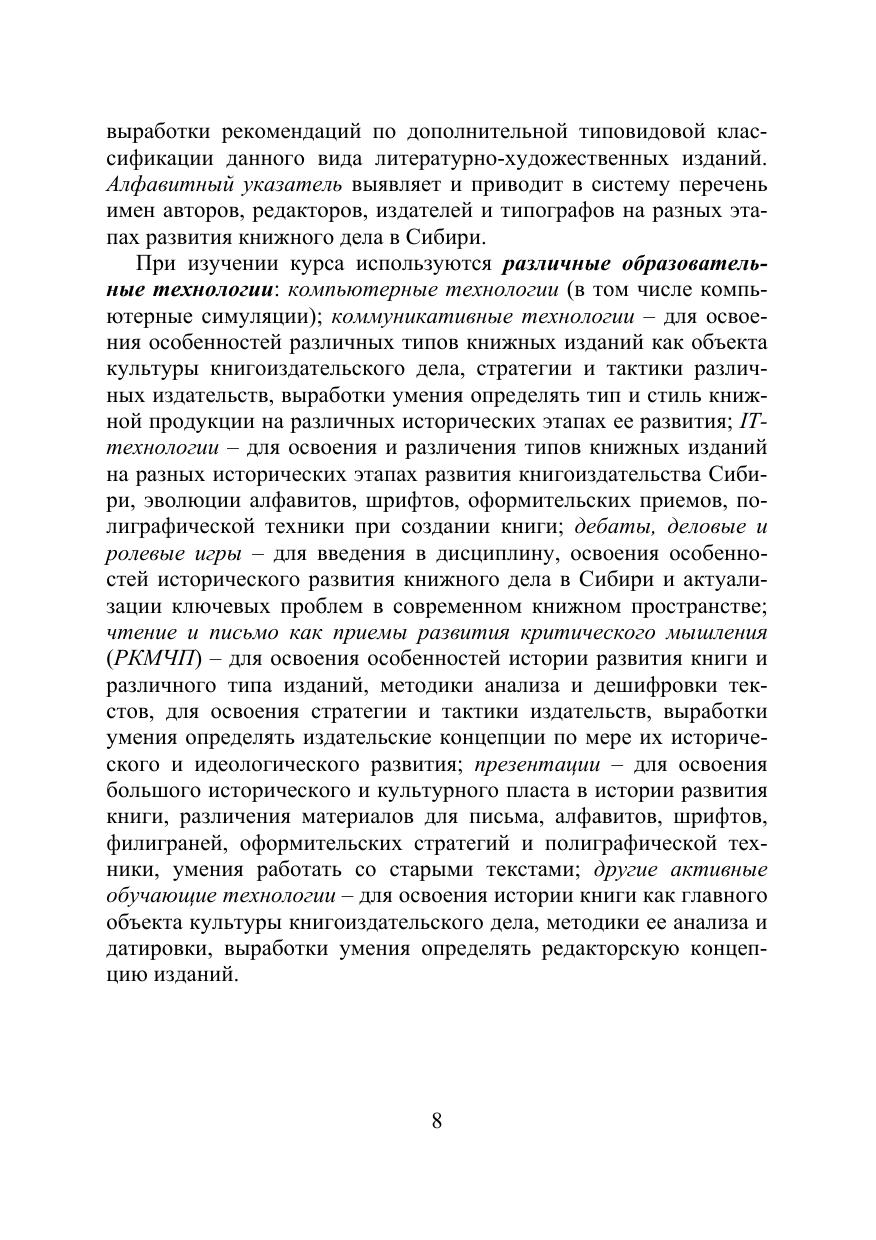 Предназначено для организации обучающей деятельности студента на лекциях, практических занятиях и при самостоятельной работе. Содержит теоретические положения и практическое воплощение при анализе региональных литературно-художественных сборников, демонстрирующих общее и особенное в истории их формирования и бытования на разных этапах развития книжного дела в Сибири. Для бакалавров высших учебных заведений, получающих образование по направлению 42.03.03 «Издательское дело». Может быть полезно студентам филологического факультета, научным работникам, а также всем, интересующимся литературно-издательской деятельностью Сибири.