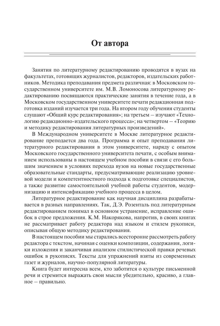 Освещены теоретические основы, методология и опыт литературного редактирования. Рассмотрены приемы работы редактора над композицией, стилем, лексикой и синтаксисом произведения на конкретных примерах из литературы различных тематических разделов: от художественной до деловой. Даны рекомендации по выделению и оценке функциональносмысловых типов речи. Приведены упражнения по курсу «Литературное редактирование». Для студентов высших учебных заведений, получающих образование по направлению подготовки «Книжное дело» и специальностям «Издательское дело и редактирование», «Журналистика», «Литературное творчество».