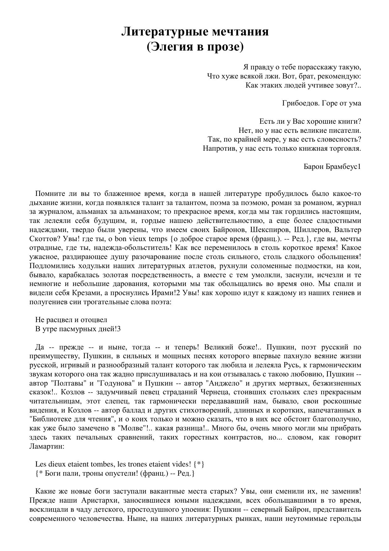 Литературные мечтания. Элегия в прозе