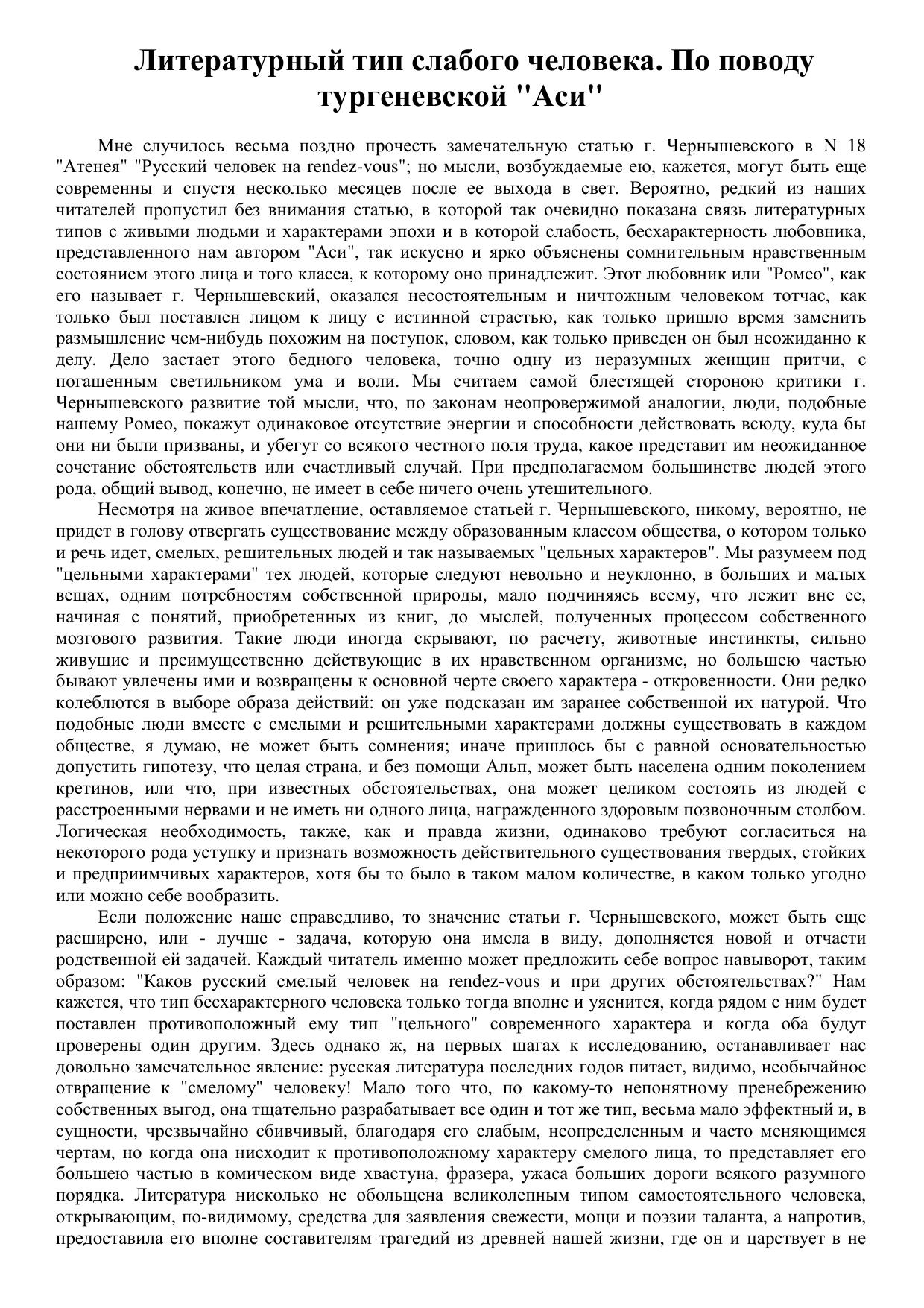 Литературный тип слабого человека. По поводу тургеневской "Аси"